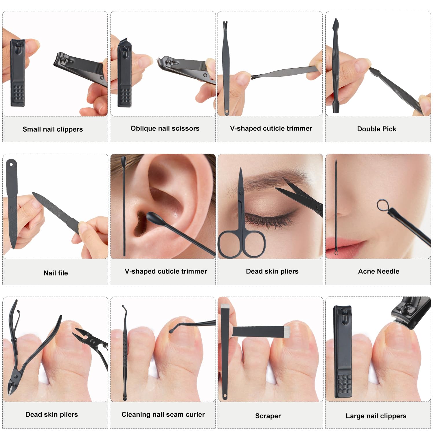 • Multi-function:manicuring, pedicuring, eyebrow shaping, anti-acne, exfoliating, eyebrow shaping.only with one set and all done, which can provide a more confident and relaxing care for you, Nail Kit, Manicure Kit, Nail Care Kit For Men.