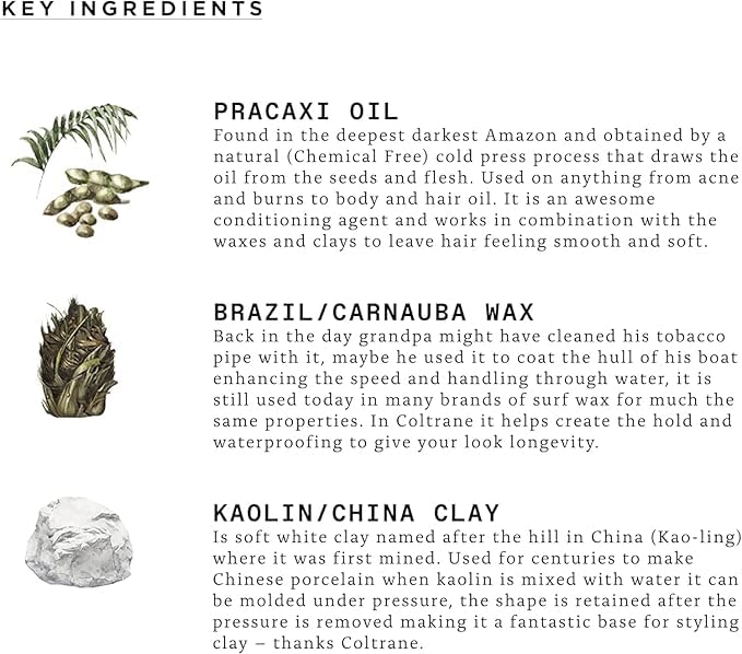 • Nature-Infused Hair Clay with Clean Ingredients: Blended with white clay, beeswax, and Pracaxi oil, this formula provides nourishment, softness, and control. Free from harsh chemicals, it's a sustainable, clean beauty essential for both men and women.