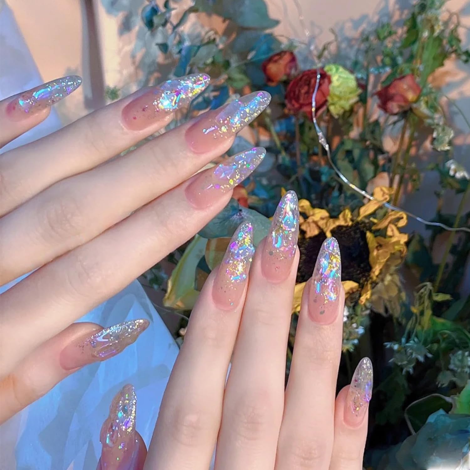 • ★Aurora nail rhinestones - contains 2 boxes nail rhinestones and gems,aurora flat back nail rhinestones and multi-shape crystal nail rhinestones, 1pcs tweezer, 1pcs rhinestone picking pen and 6 sizes round aurora nail gems for nails