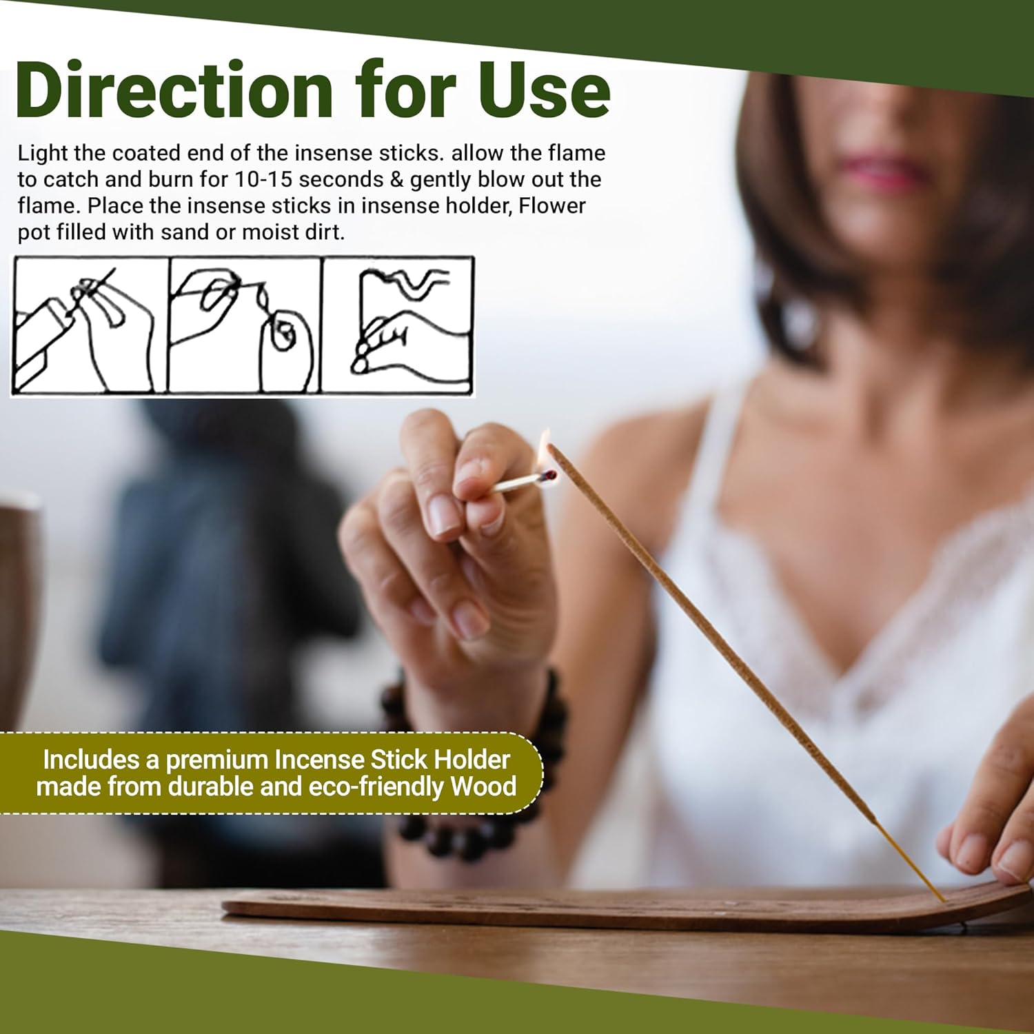• Includes Free Wooden Holder – Yuvora incense sticks natural set includes a durable wooden incense holder designed to catch ash and complement any décor. No need for separate purchases—enjoy a hassle-free burning experience!