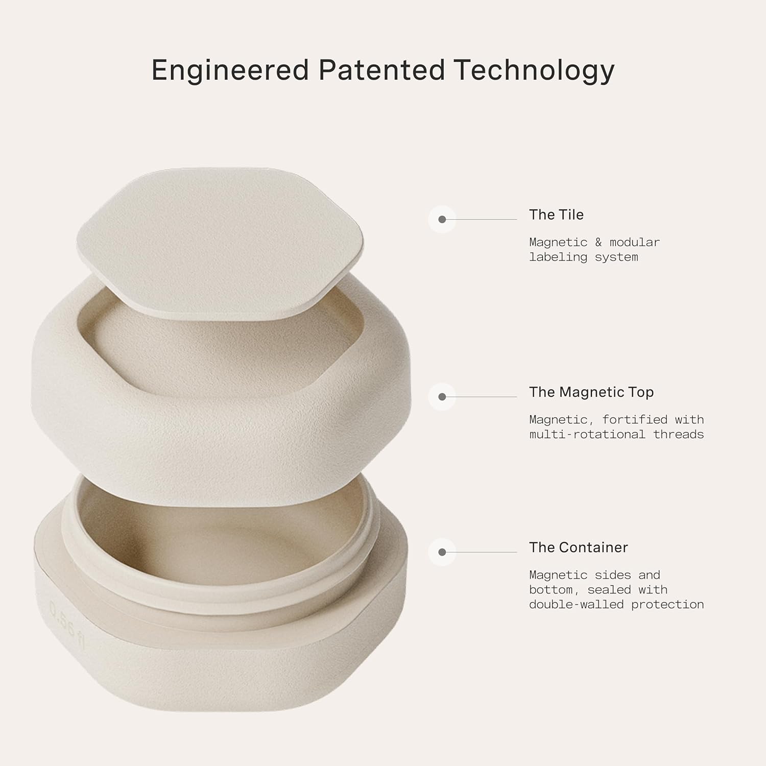 • PATENTED MAGNETIC DESIGN - Designed for seamless storage, our travel capsules feature a magnetic design that connects each container vertically or horizontally. They include magnetic labels that seamlessly swap between The Flex Small, The Flex Medium, and The Flex Large Capsules.