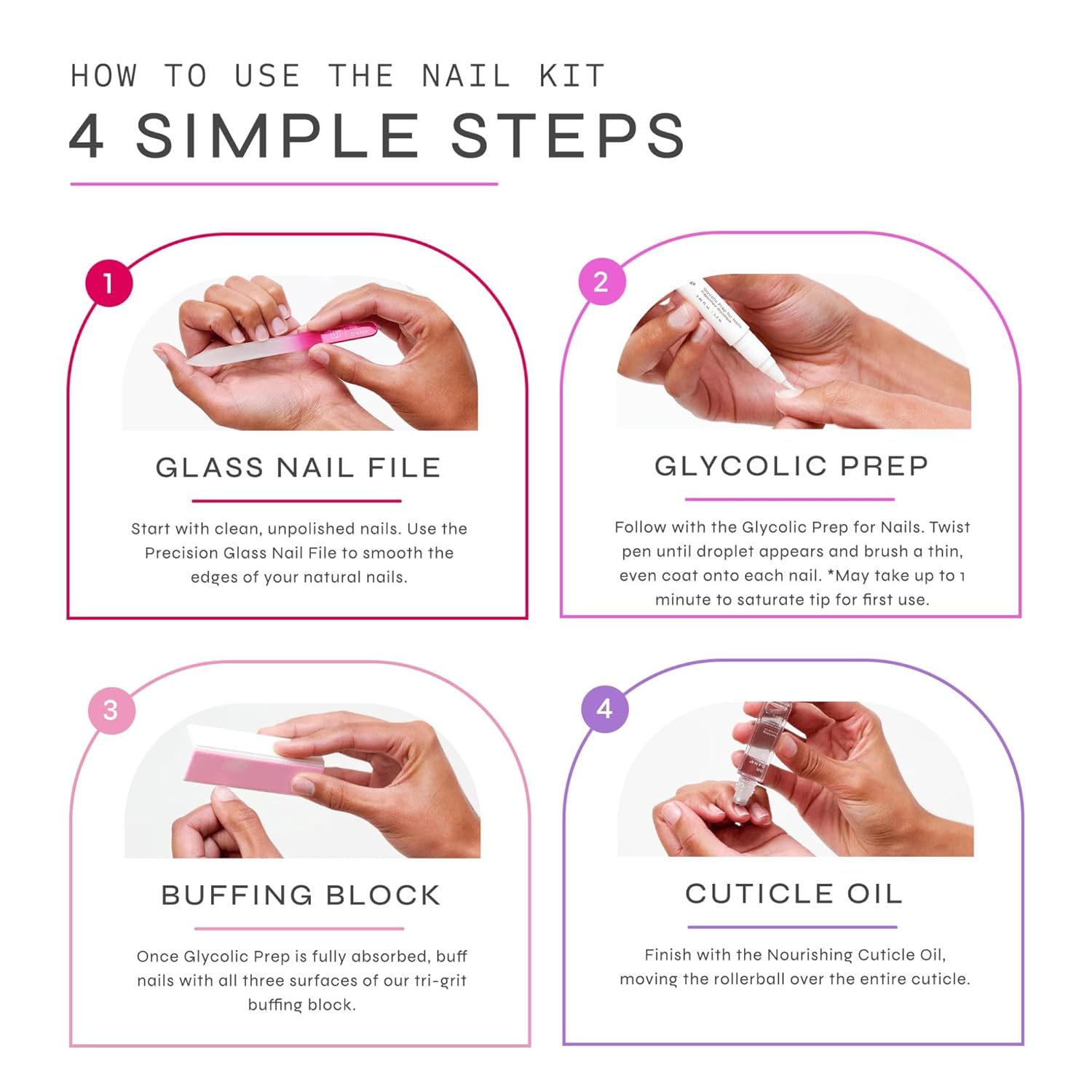 • High Shine Without Polish: The Tri-Grit Buffing Block in this nail kit creates a glass-like finish on your nails, eliminating the need for nail polish. This means no chipping!