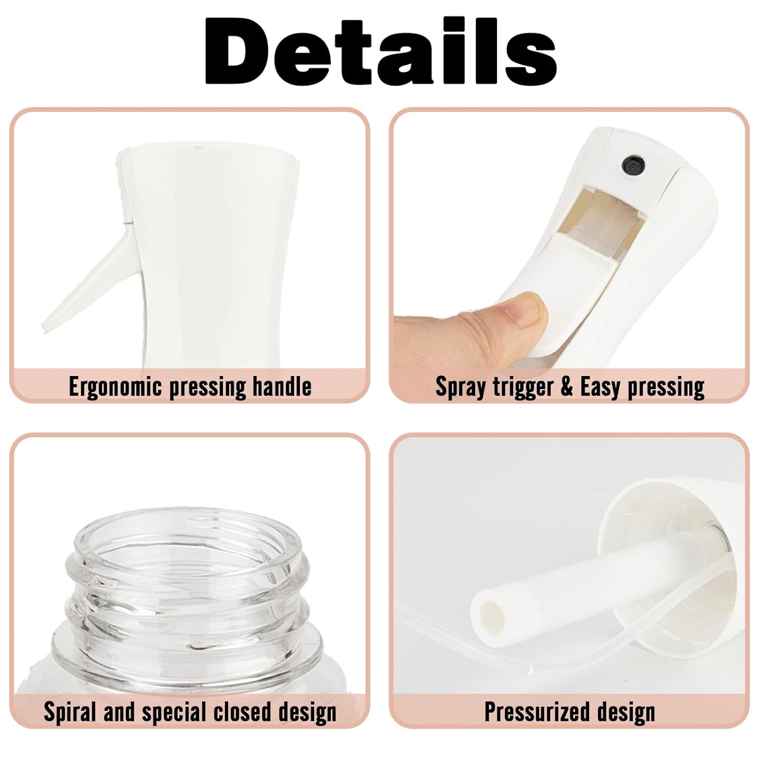 • 【Continuous Spray】The continuous spray bottle is engineered with robust pre-compression technology, which produces a mist stream that lasts for several seconds with just a few gentle presses.