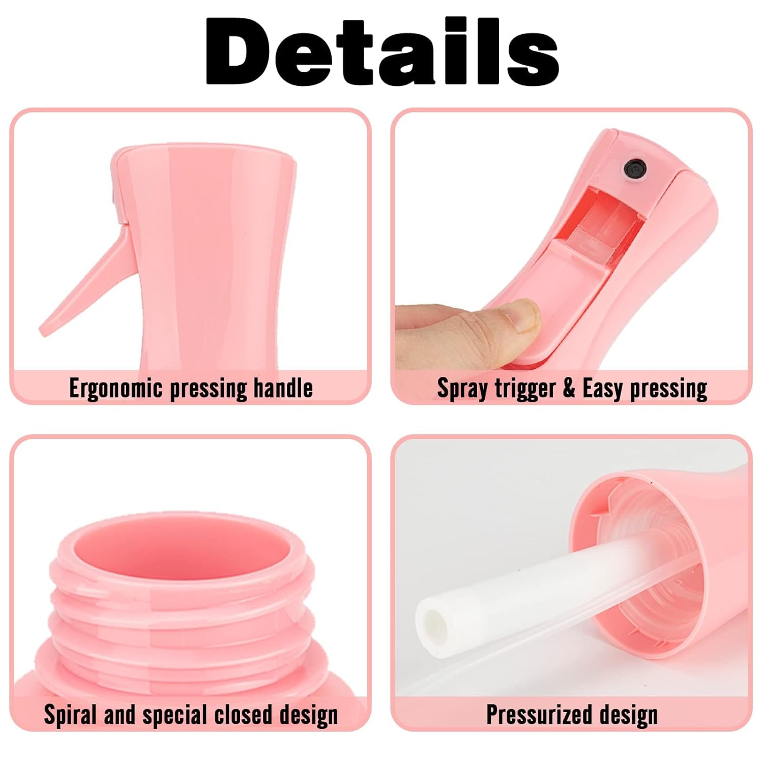 • 【Continuous Spray】The continuous spray bottle is engineered with robust pre-compression technology, which produces a mist stream that lasts for several seconds with just a few gentle presses.