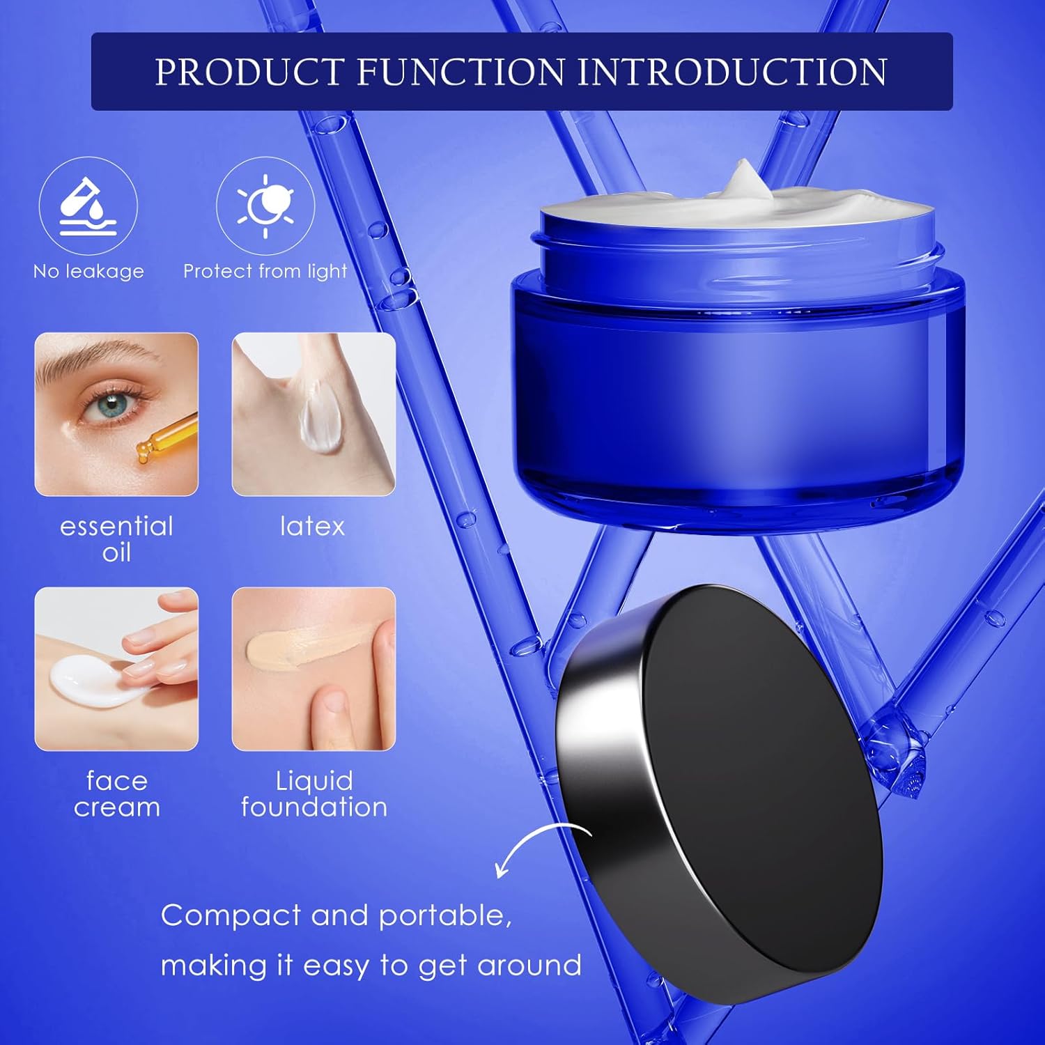 • Include: Set of 12 PCS, 2 Oz cobalt blue glass jars with inner liners and black lids. These 2 Oz containers are made of eco-friendly, durable, toxic-free, glass material.Please use cold water when cleaning