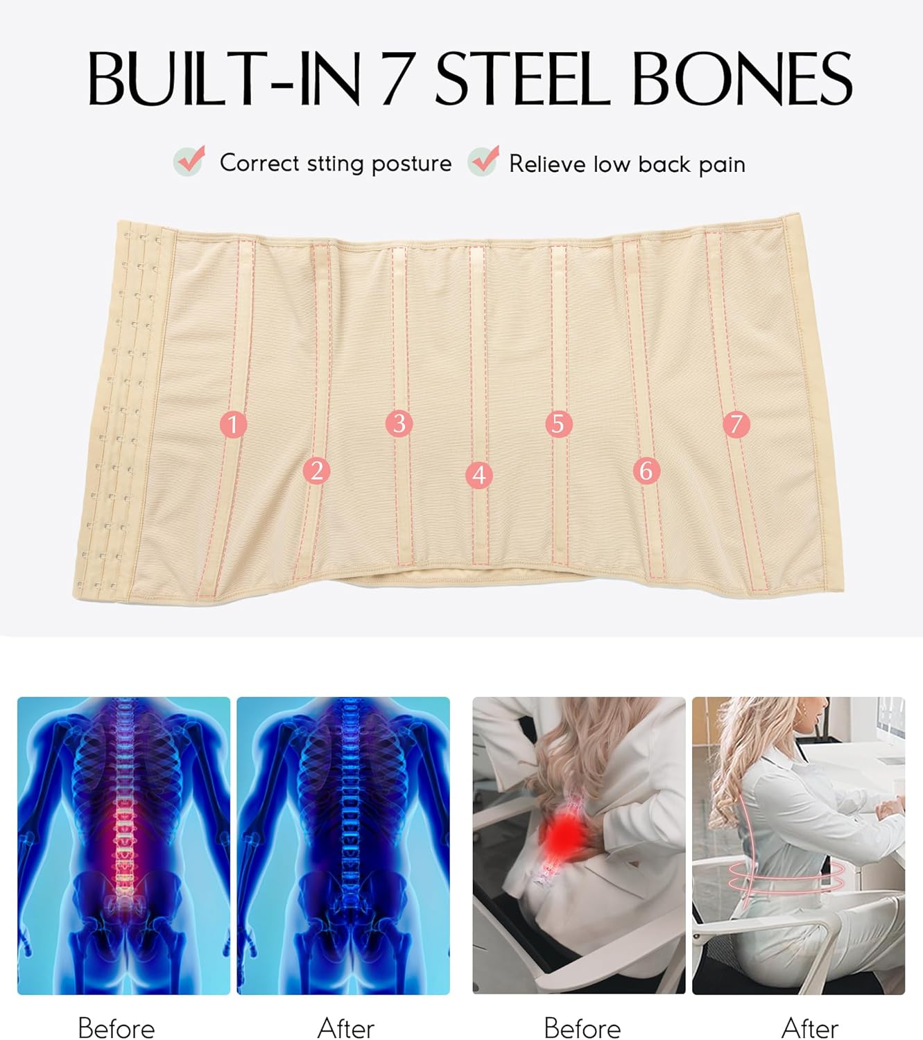 • STRONG SUPPORT LOW BACK SHAPEWEAR: The shapewear for women tummy control equips with 7 spiral steel bones fitted to curve naturally, encouraging an upright posture all time without rolling up and down, no matter you're doing housework, working, or exercising. Back fat shapewear provides all-around support and pressure to the waist area, control the flabby back, evenly distribute pressure along the back to relief back pain and improve hunchback, so as to achieve a more elegant appearance.