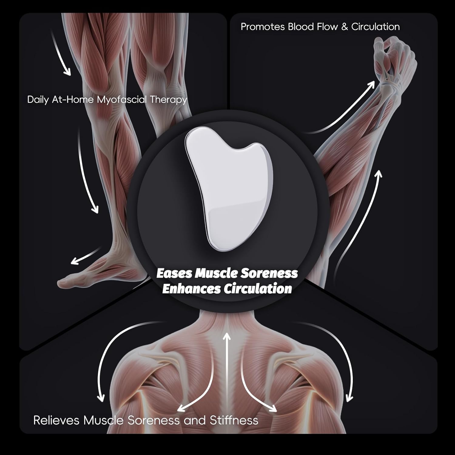 • Full-Body Myofascial Therapy Tool: The gua sha scraper glides across tight areas like shoulders, back, arms, or legs. Supports fascia release, blood flow, and recovery after workouts, long sitting, or repetitive strain—no electricity, just effective manual care.