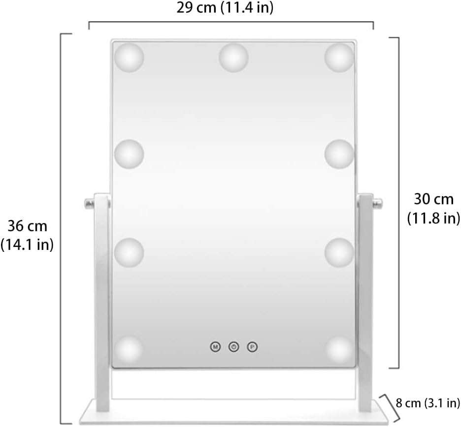 • Three different light colors: 9 big bulbs lights providing a large and bright viewing, adjustable brightness and 3 lights color modes(day light(5500K), cold light(7800K), warm light(4000K)), helping you to finish a flawless professional makeup suitable for any occasions