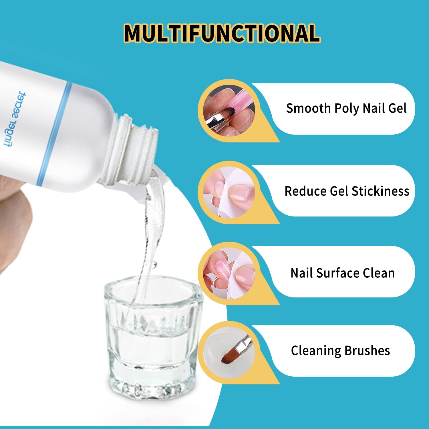 • 【MULTI-FUNCTIONAL SLIP SOLUTION】This slip solution is suitable for all other brands of gel nail products. It helps nail polish dry quickly and increases the toughness of the nail brush when applying nail polish with a nail brush.In addition, BEVINAS slip solution is good at cleaning the nail brush from any residual gel/powder.Whether you have used gel nail polish, poly nail gel or functional gel. You can easily create nail patterns at home.