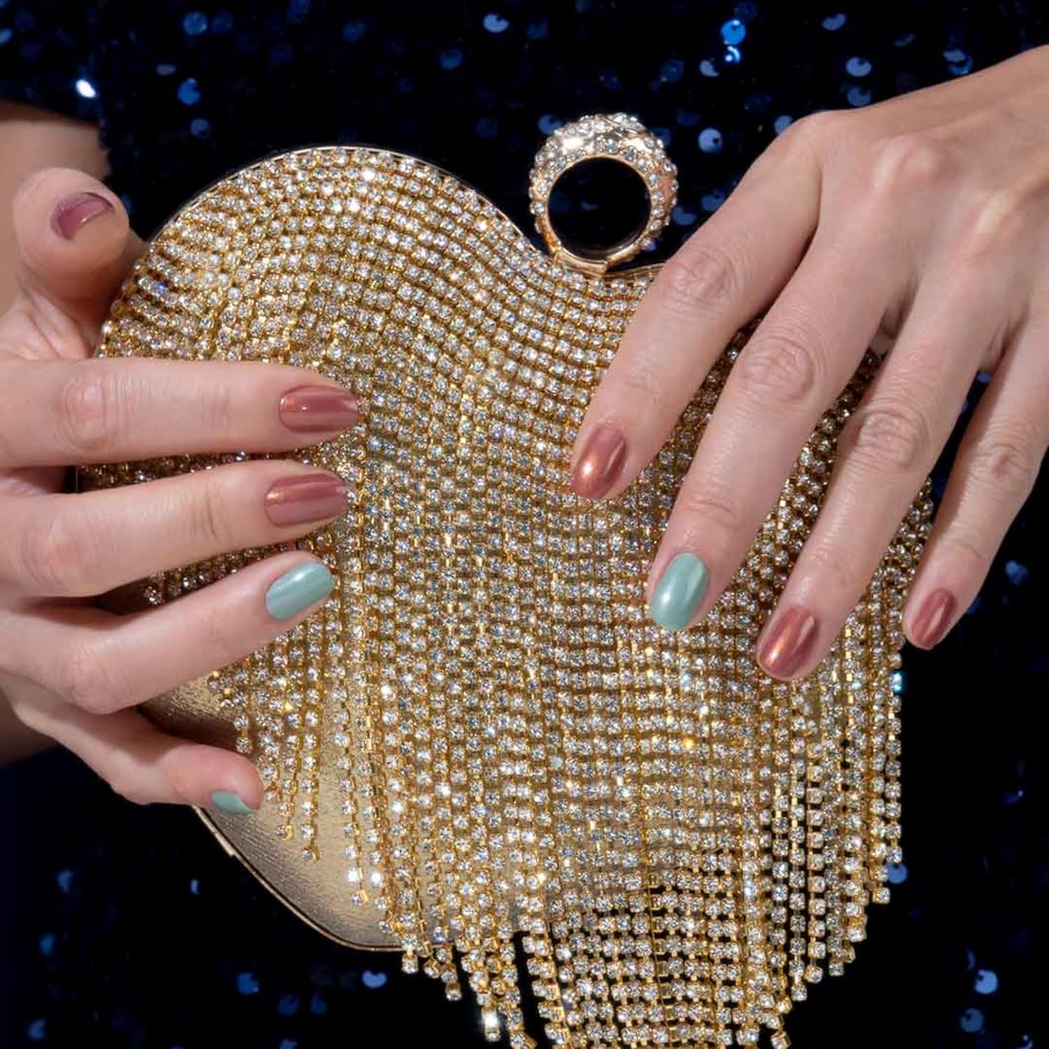 • essie gel couture multi-faceted a softened rose longwear vegan nail polish with smooth gold pearl and a shimmer finish