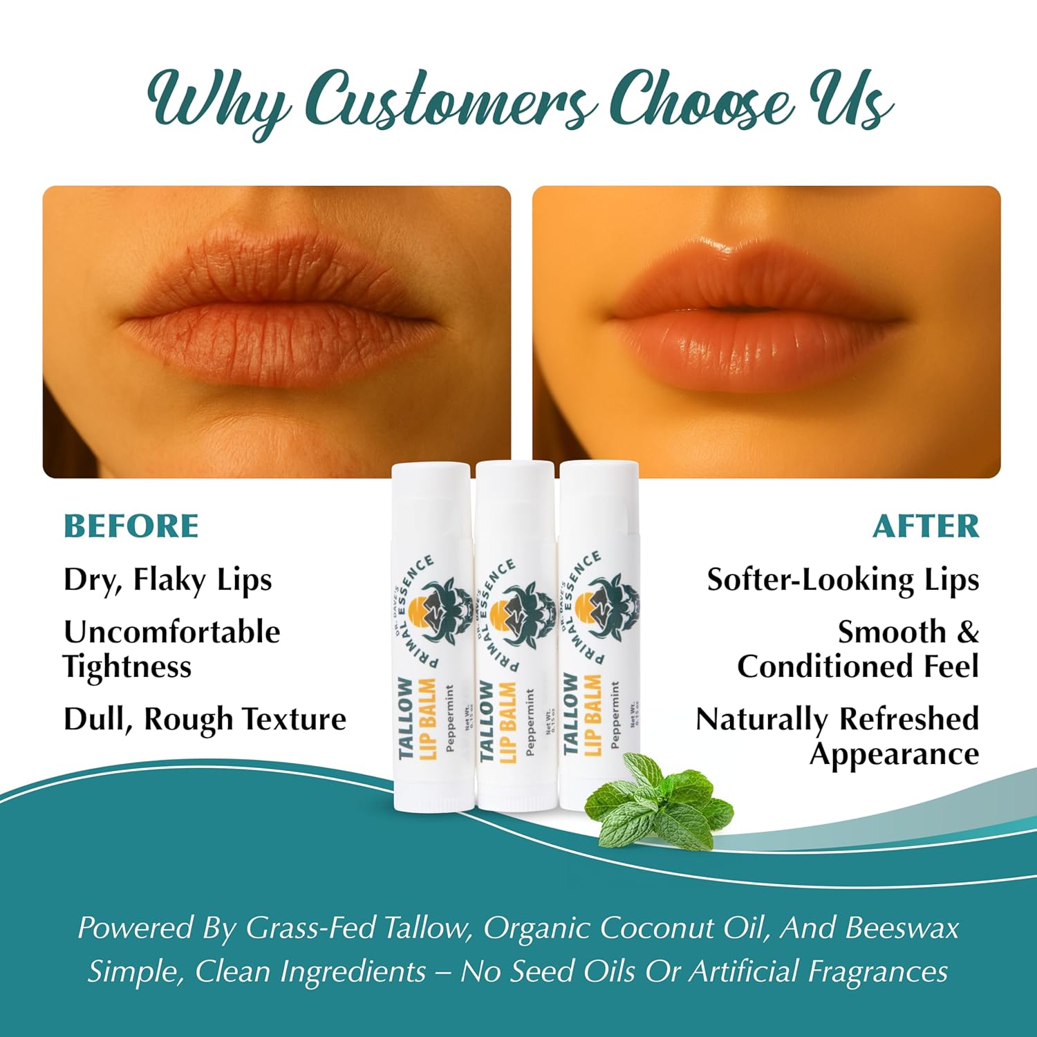 • All Natural Formula: Made without seed oils or artificial fragrances, our tallow lip balms provide simple, effective care with a thoughtfully selected blend
