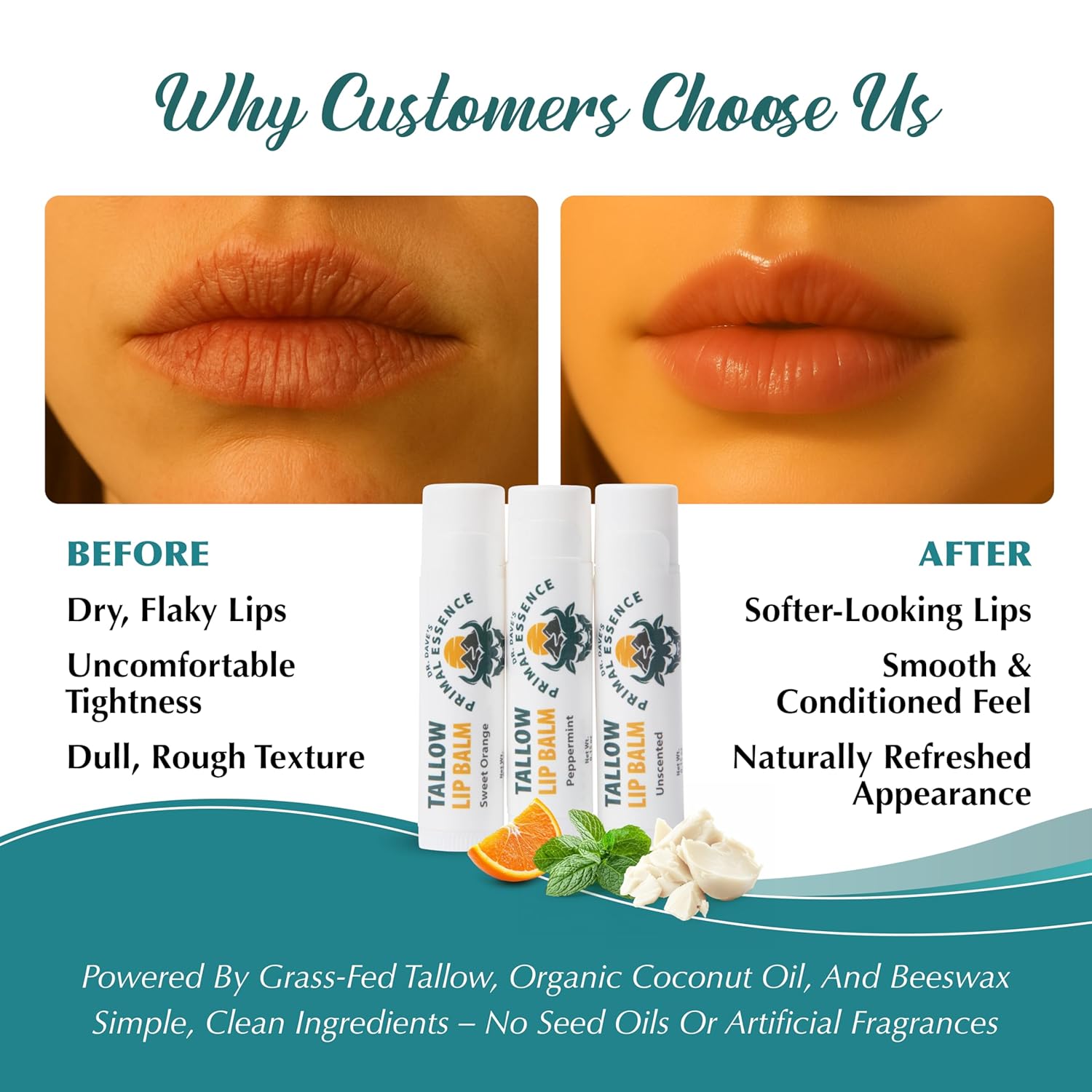 • All Natural Formula: Made without seed oils or artificial fragrances, our tallow lip balms provide simple, effective care with a thoughtfully selected blend