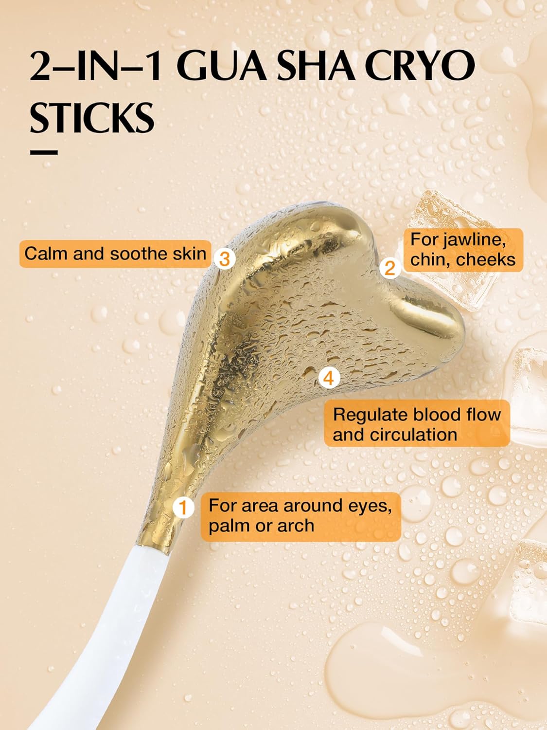 2-in-1 Gua Sha Cryo Sticks, Facial Skin Care Tools for Women Facial Massager, Unbreakable Stainless Steel Esthetician Supplies, Cooling Ice Globes Roller with Carry Case