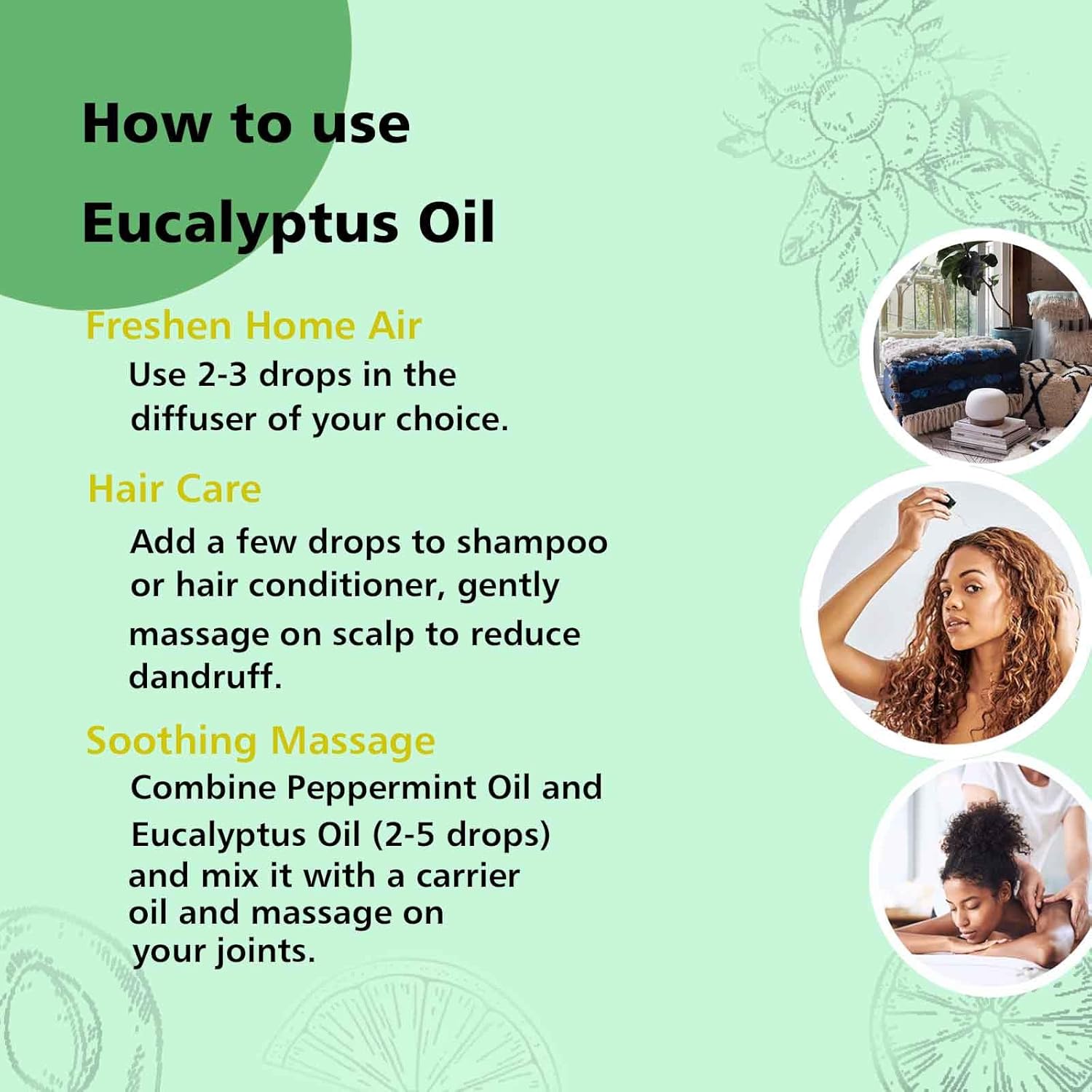 • 100% Pure & Natural: Our eucalyptus essential oil is steam distilled from fresh eucalyptus leaves, offering a pure and undiluted natural oil