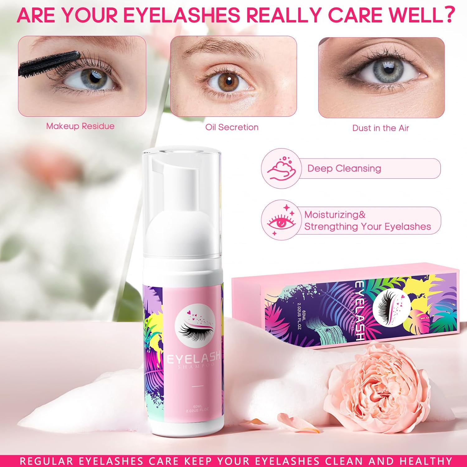• GENTLE LASH EXTENSION CLEANSER:Keep your lashes healthy,clean and long with our premium lash shampoo kit with fan! Our foaming lash shampoo not only cleans residue from your lashes,but also reduces lashes falling out.