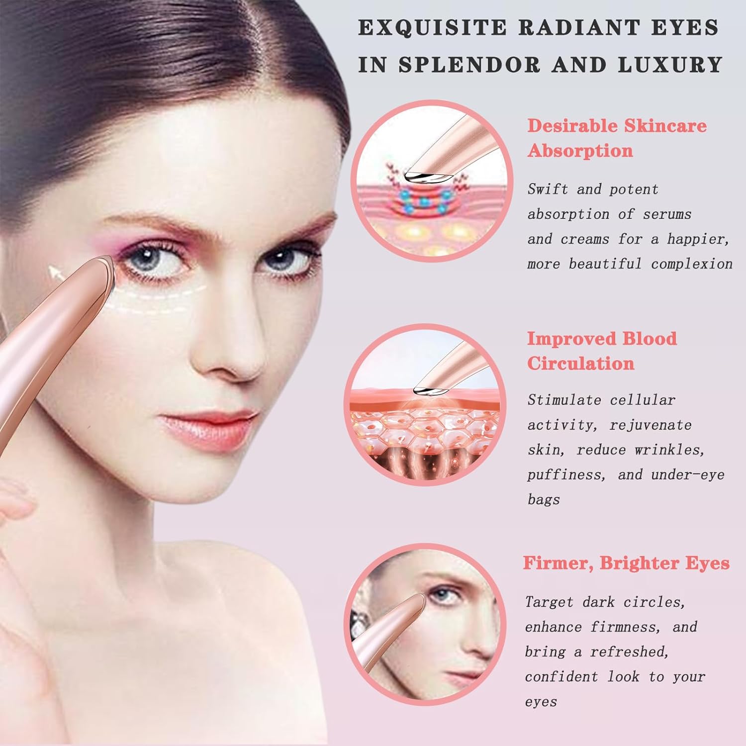 Eye Lift Wand, 3 in 1 Vibrating 98°F to 113°F LCD Eye Massager for Dry Eyes, Dark Circles and Puffiness, Face & Neck Lifting Tool for Fine Lines and Wrinkles, Rose Gold