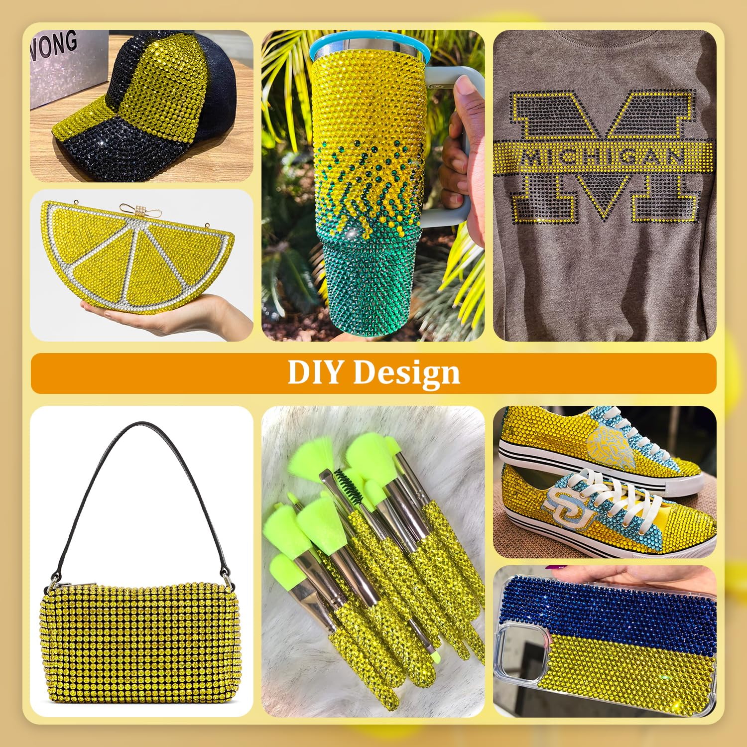 Resin Rhinestones for Crafting, 1 Box Lemon Yellow Multi Sizes Flatback Bedazzling Crystals for Crafts Nail Art Deco, Non Hotfix Gems Charms for Tumbler Shoes Clothing Fabric Face Makeup