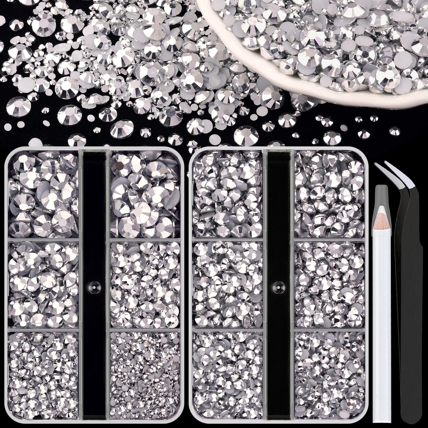 • 💎PACKAGE CONTENT -- This resin rhinestone package includes 2 boxes with 6 grids, featuring a variety of sizes: Box #1 contains 2mm x 1 grid, 3mm x 1 grid, 4mm x 1 grids, 5mm x 1 grids, and 6mm x 2 grids; Box #2 contains 3mm x 2 grids, 4mm x 2 grids, 5mm x 2 grids. 1 tweezers and 1 pickup pen are included for easily picking up of rhinestones. This set offers more large-sized gems, making it perfect for DIY craft decorations, eye makeup, face makeup and nail art.