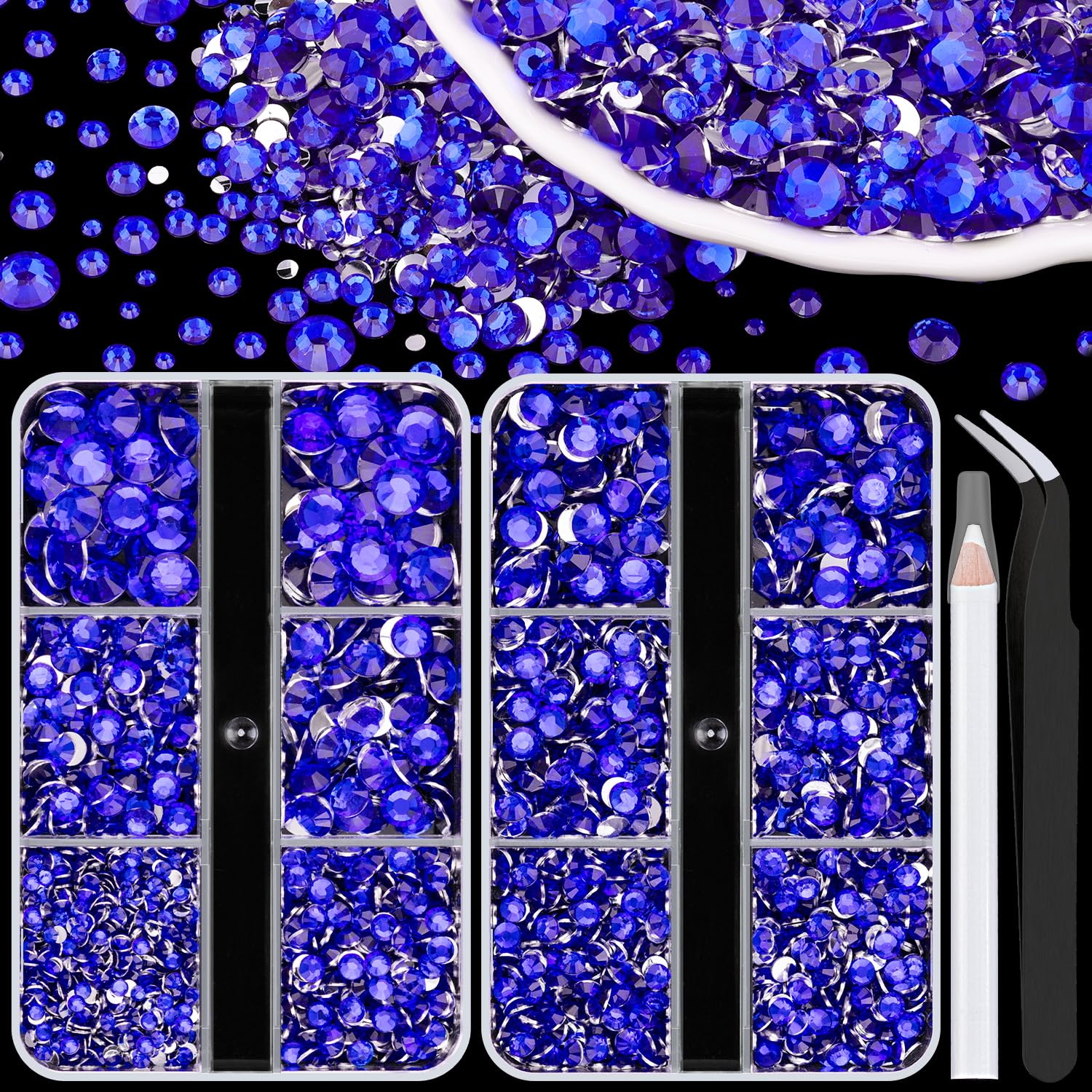 Resin Rhinestones for Crafting, 2 Boxeses Royal Blue Multi Sizes Flatback Bedazzling Crystals for Crafts Nail Art Deco, Non Hotfix Gems Charms for Tumbler Shoes Clothing Fabric Face Makeup