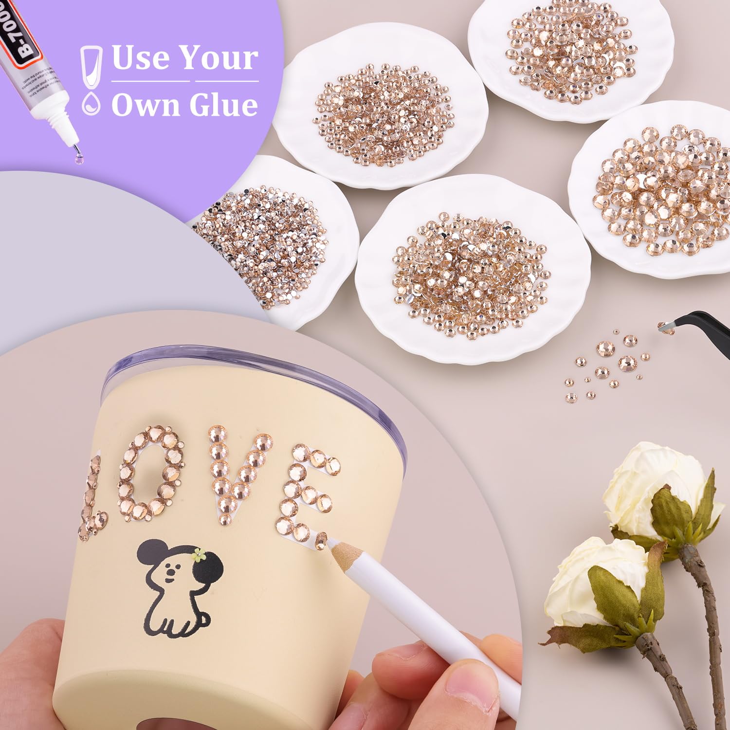 Resin Rhinestones for Crafting, 2 Boxeses Champagne Multi Sizes Flatback Bedazzling Crystals for Crafts Nail Art Deco, Non Hotfix Gems Charms for Tumbler Shoes Clothing Fabric Face Makeup