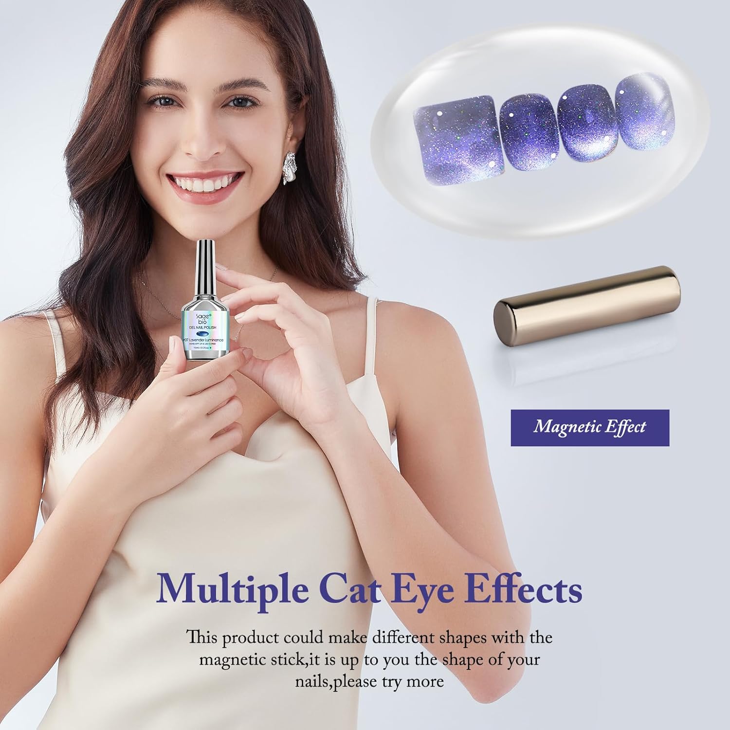 • Dazzling Crushed Diamond Effect: Transform your nails with SAGEBIO's Crushed Diamond Cat Eye Gel Polish. The unique formula combines holographic glitter with a magnetic effect, creating a stunning crushed diamond look that shines from every angle.