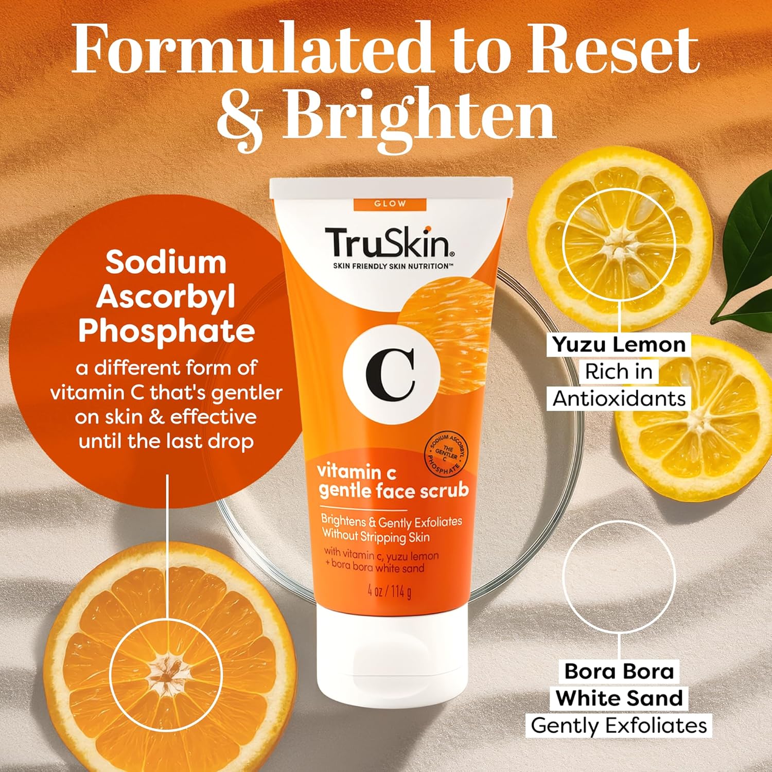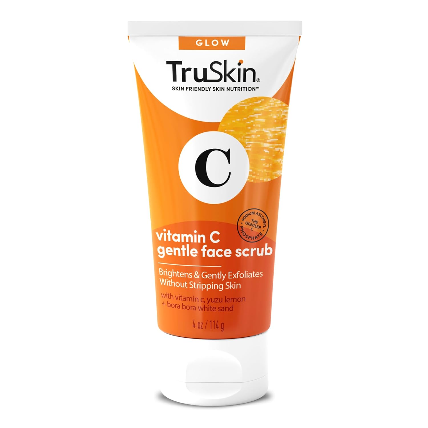 TruSkin Vitamin C Gentle Face Scrub - Brightening Daily Face Exfoliator for All Skin Types - Softens & Smooths Skin with Vitamin C, Yuzu Lemon, and Exfoliating Bora Bora White Sand - 4 Fl. Oz