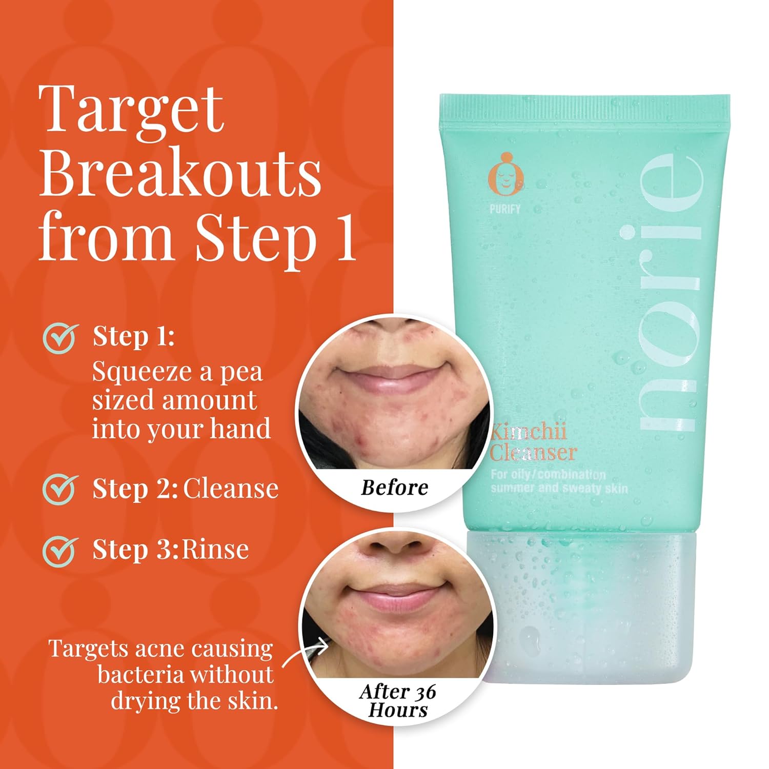 • Targets Normal, Oily & Combination and Breakout Prone Skin – Ideal for normal, oily, combination, sweaty and breakout prone skin types, Norie Kimchii cleanser helps balance oil production, remove excess oil and leaves your face feeling clean, clear, soft and fresh.