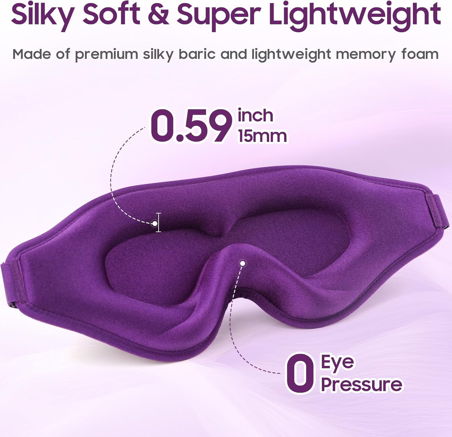 Sleep Mask - Total Blackout 3D Sleeping Mask, Super Lightweight & Silky Soft Eye Mask for Sleeping, Fully Adjustable Fit for Home, Office, Traveling, Meditation, Yoga, Purple