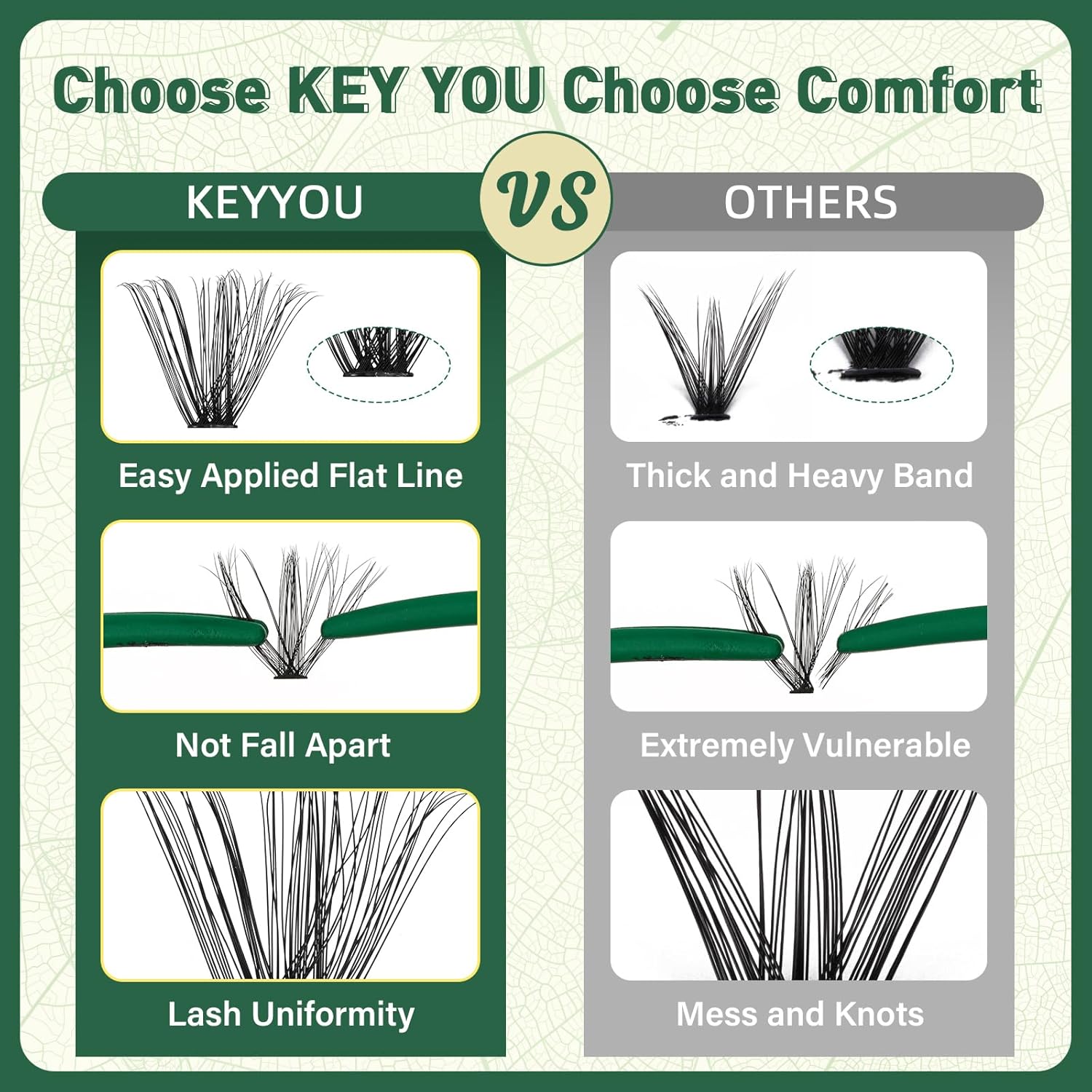 • 【Super Soft&Comfortable】KEYYOU new lash clusters made with softer updated materials, it is lighter and more comfortable to wear, and can be worn all day without burden, making the beauty last longer.The lashes clusters with super thin roots allow you to better fit your natural eyelashes.