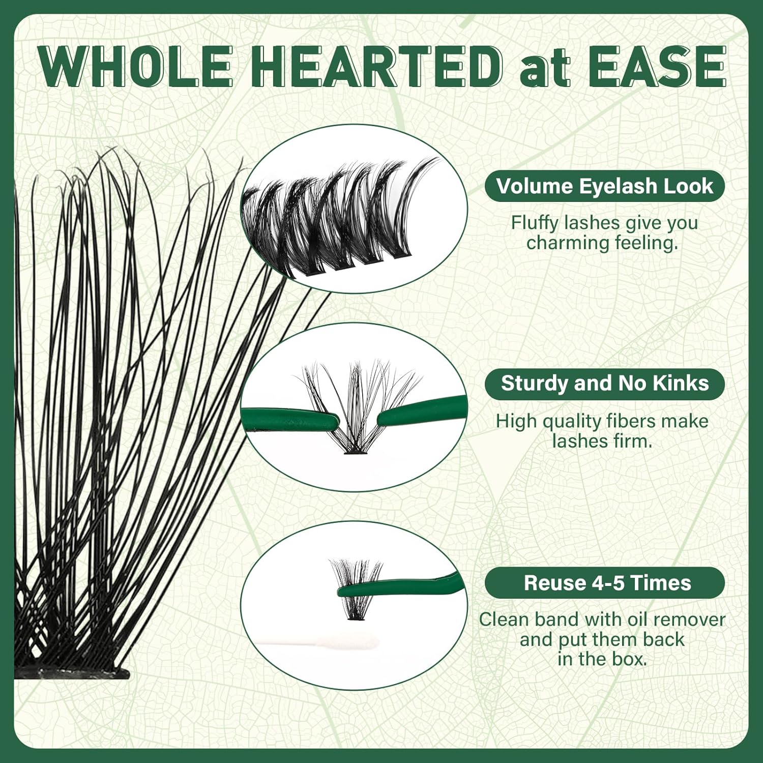 • 【High Quality】 The eyelash clusters look real, not plasticky, and reusable with proper care. Easy to take off and these individual eyelashes will not be broken when getting them off the backing with tweezers. The lash clusters extensions last for weeks. Soft, lightweight, vegan, knot-free, and matte dark.