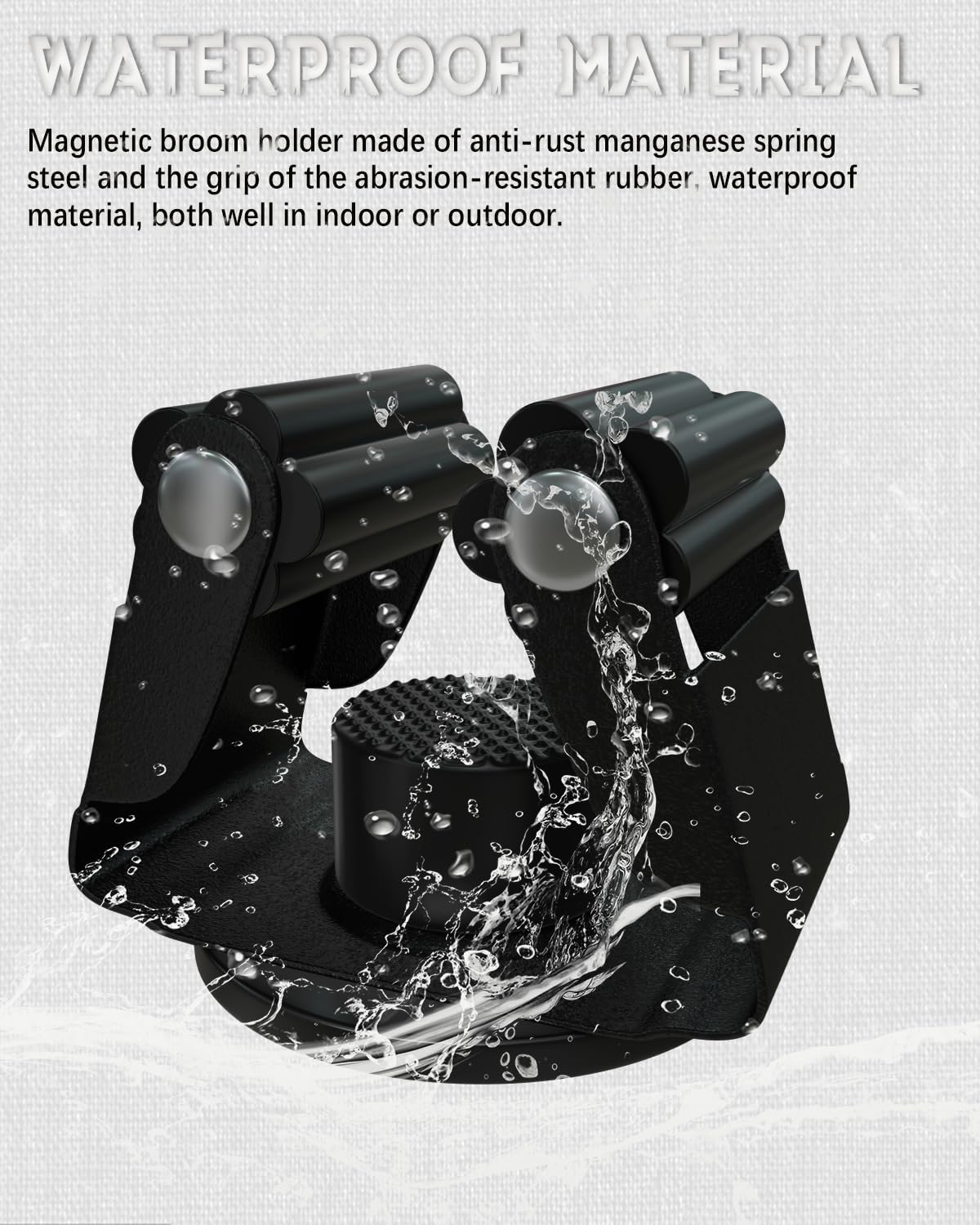 • Magnetic base: magnetic mop broom holder base are rubber coated magnets; the rubber surface protect the adsorbed object and will not allow external stains to pollute the magnet inside; so they can be applied outdoors for a long time with confidence