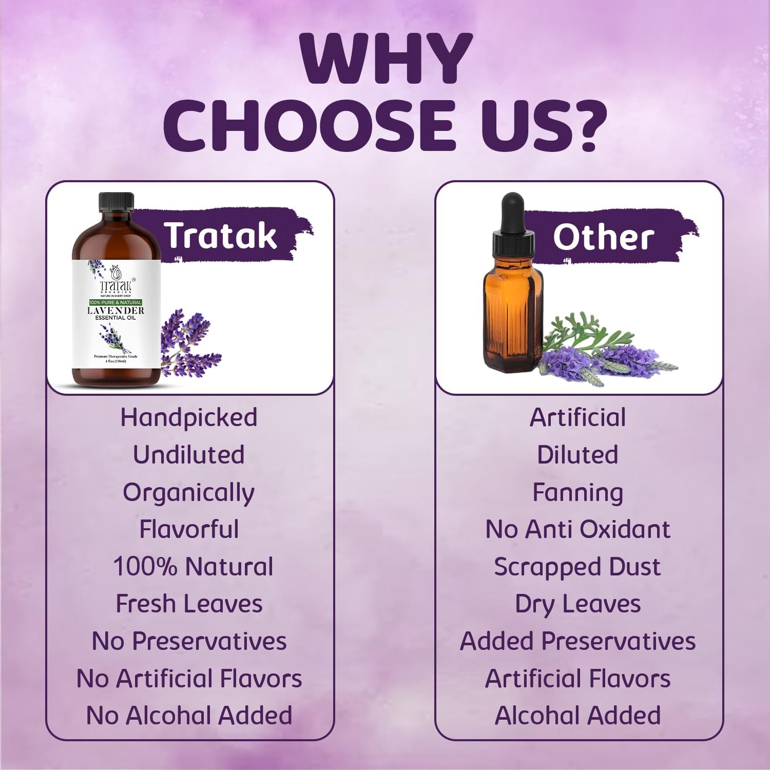 • PACKAGE INCLUDES: Pack of 1 Tratak Lavender Essential Oil with dropper, Net Weight: 4 Fl Oz
