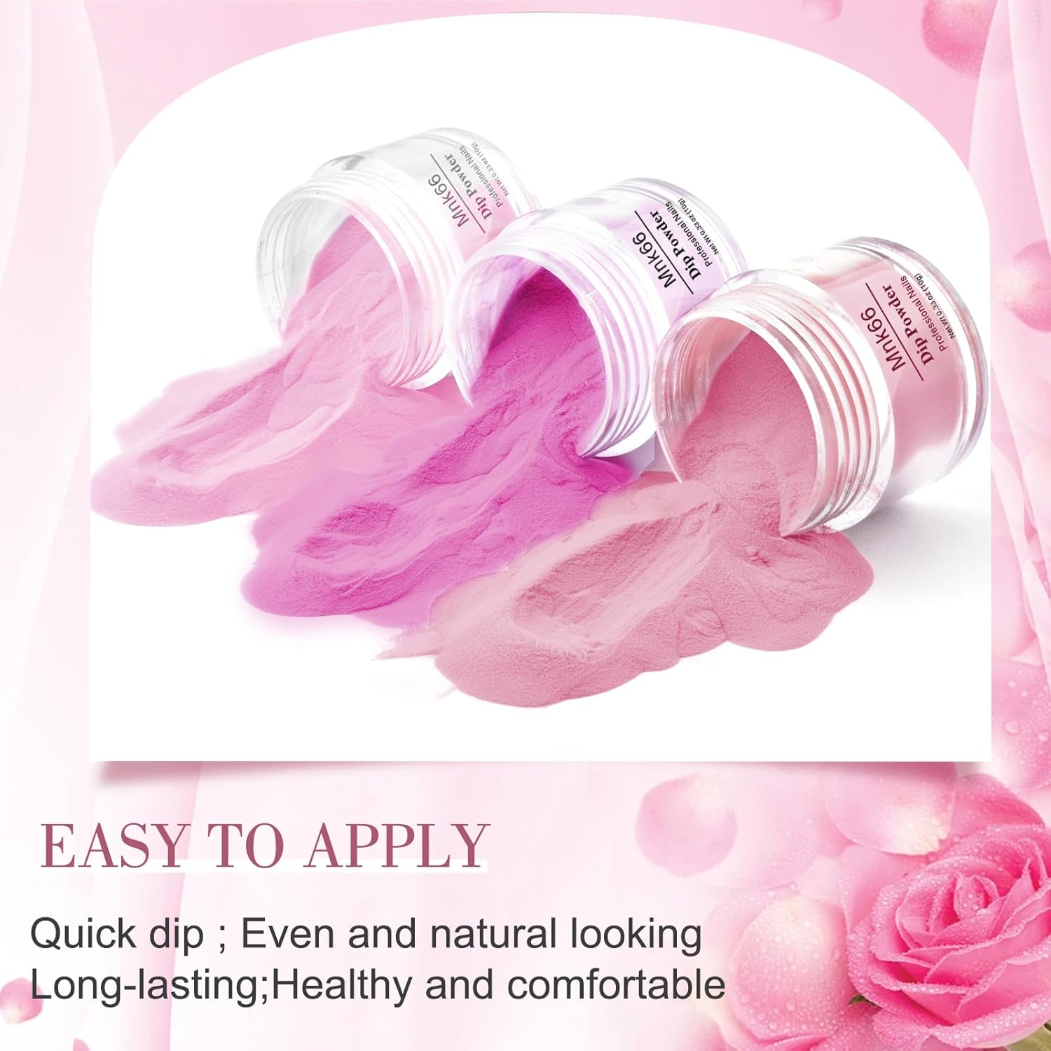 • EASY TO USE - Mnk66 dip powder nail color set doesn't need LED nail lamp to cure, dry faster and skin-friendly, smooth and even with glossy and natural effect. More long-lasting than other regular dip powders. Easy to apply with dip liquid, suitable for beginners and professional nail salons. TIPS - The effection of dip powder will be showing different between 2~3 coating.