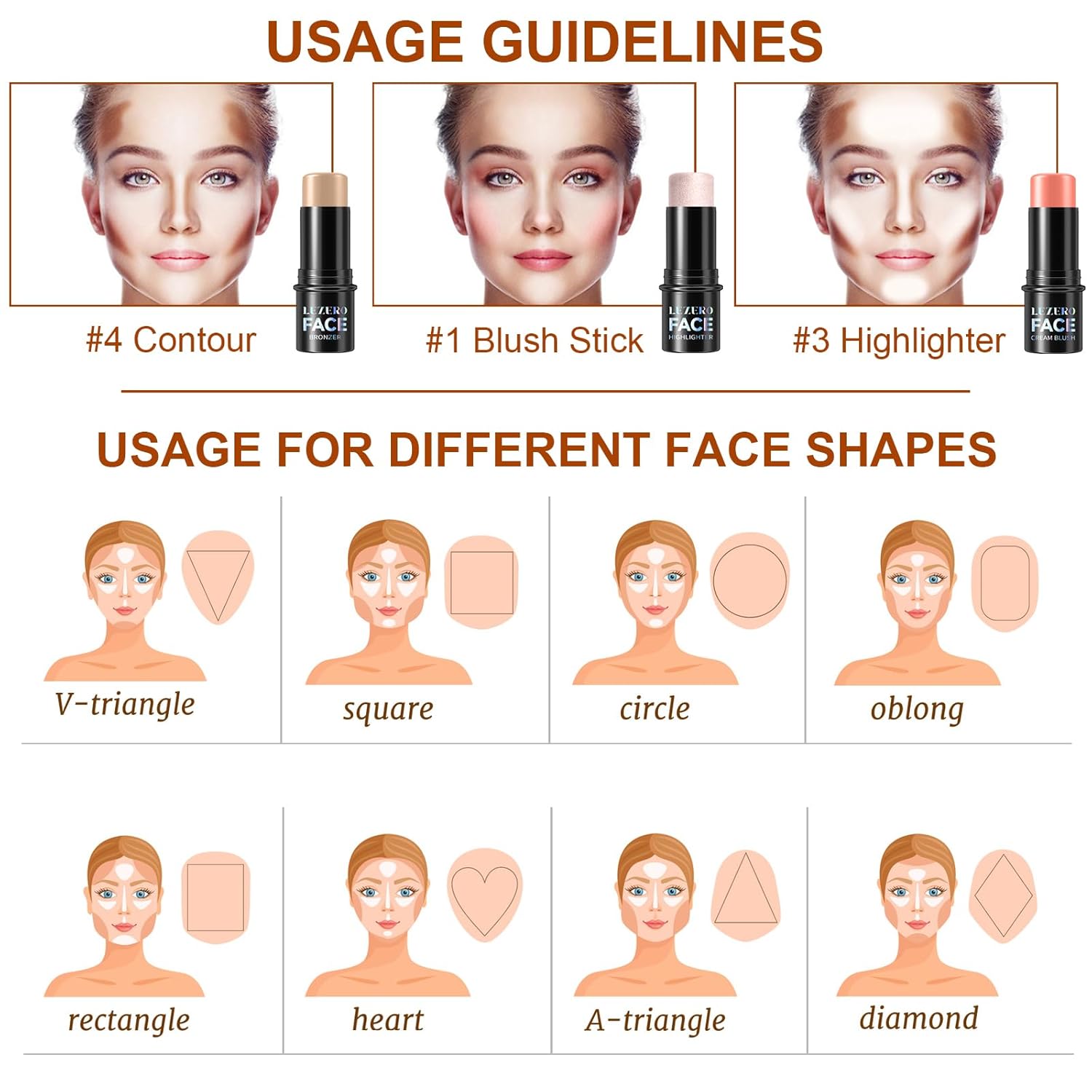 • HOW TO USE : After applying your care foundation, use the highlighter stick, contouring stick and blush stick to gently apply to your forehead, cheeks, jawline and nose, then use a soft makeup brush to smooth out until it blends into your skin for a natural, perfect matte finish look.