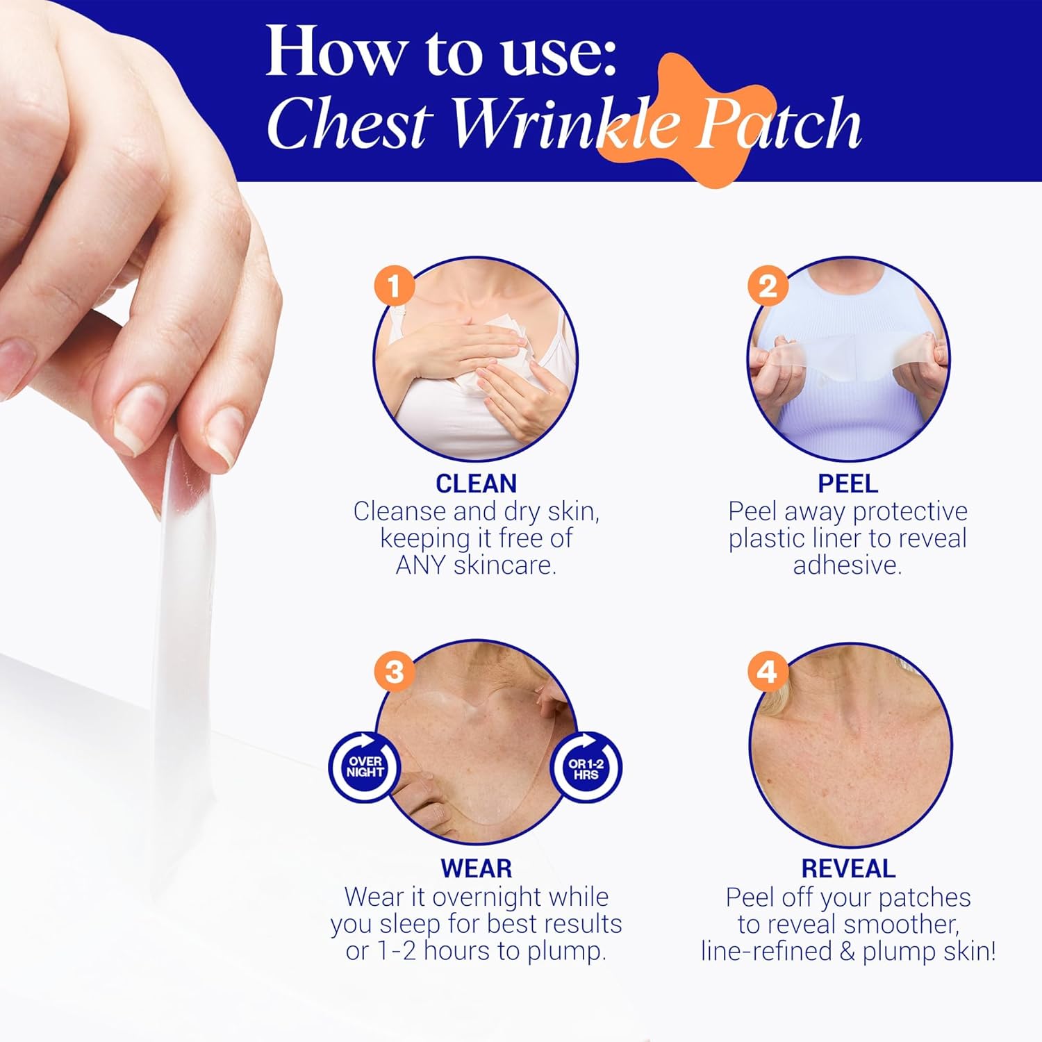 • REUSABLE HYPOALLERGENIC CHEST SILICONE WRINKLE PATCH: Our Wrinkles Schminkles signature chest silicone patch is expertly designed to visibly reduce and smooth wrinkles, fine lines, sun damage, sleep lines, and cleavage lines on the chest area. Made from hypoallergenic silicone, this patch offers a safe and comfortable solution that is reusable for sustained effectiveness. Enjoy lasting results with minimal irritation.