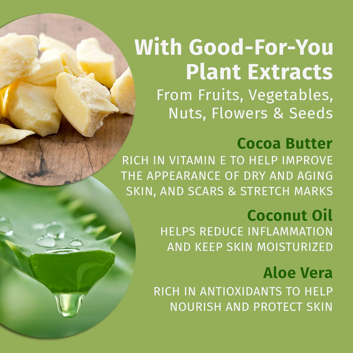• NOURISHING: Composed of skin-essential linoleic omega 3 & fatty acids & made with cocoa butter, coconut oil, & aloe that help strengthen the skin barrier, to keep skin soft for a longer time, & to help skin look & feel younger