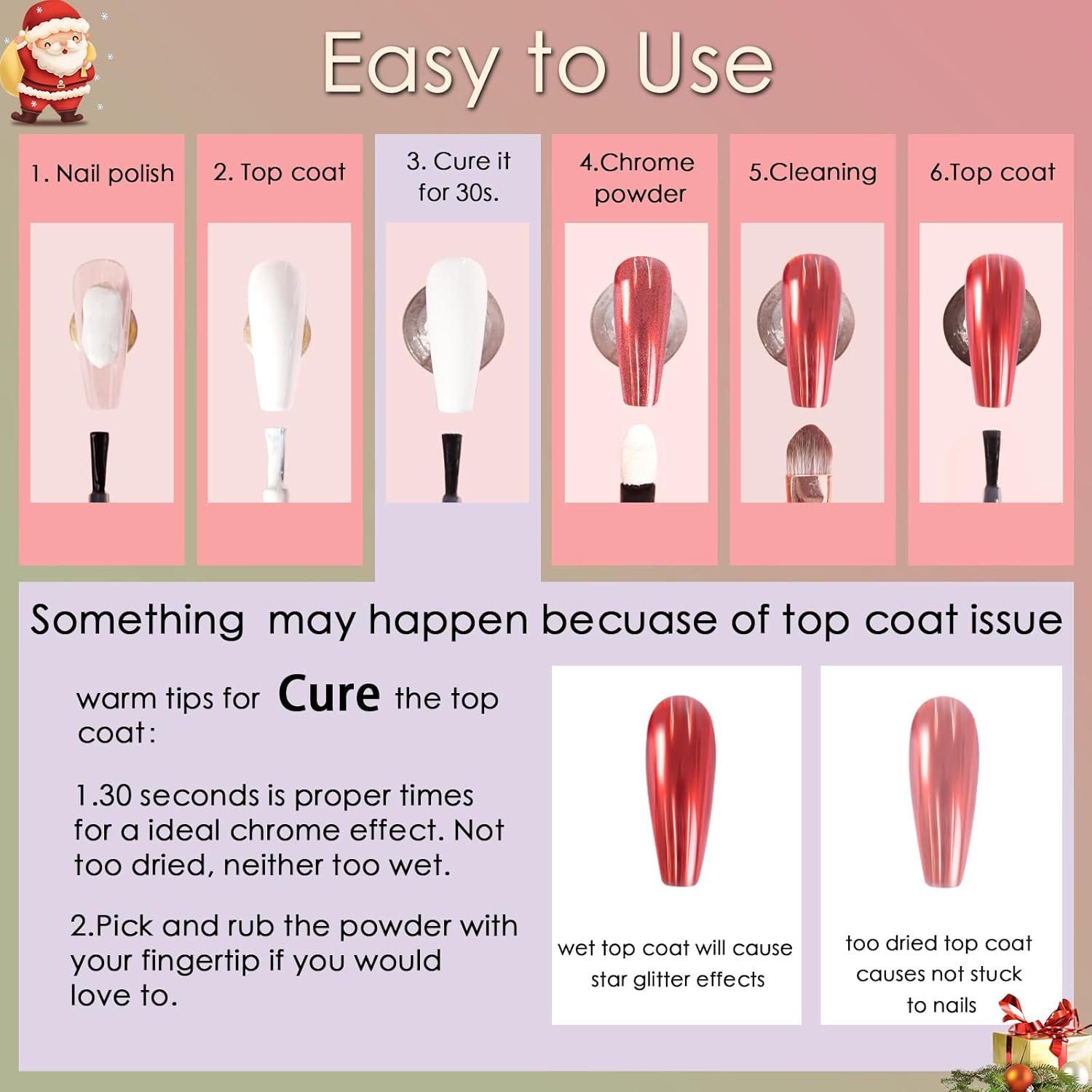 • Ultra Excellent Texture: Allstarry Metallic Christmas chrome nail powder is fine and smooth without particles feeling, so you can make your nails exquisite with an amazing mirror effect. Chrome powder palette is non-toxic, more durable, and environmentally friendly, which does not harm your nails and skin, using it more at ease. Chrome powder for gel nails is highly pigmented and provides an excellent metallic mirror effect that can last for several weeks if used correctly.