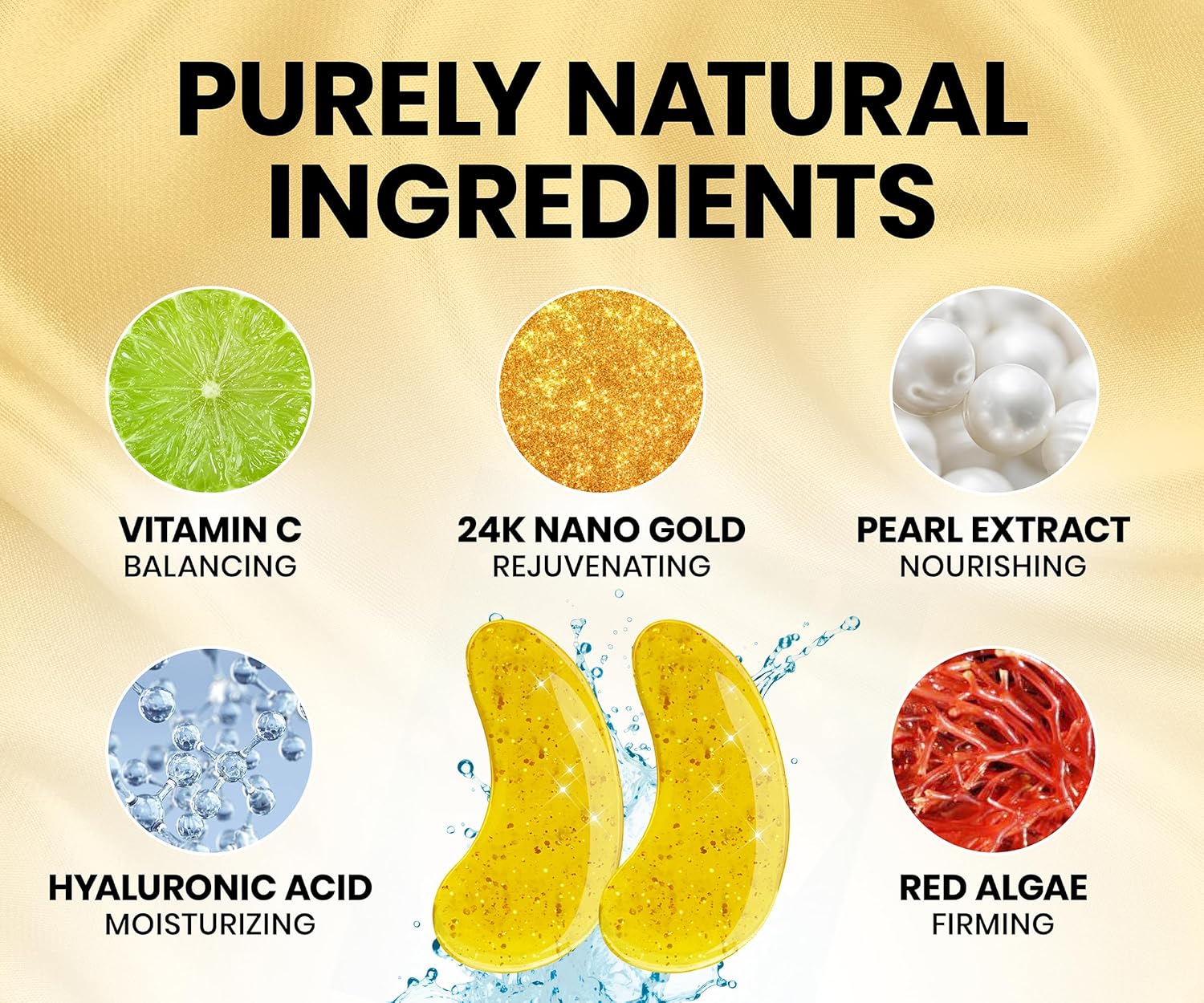• BEAUTY REST IN A BOX: Visually refresh tired, puffy eyes and look wide awake thanks to your gold eye patches for puffy eyes. Lock in moisture and maximize the hydrating effects of vitamin c and hyaluronic acid. Care for your skin with face masks skincare.