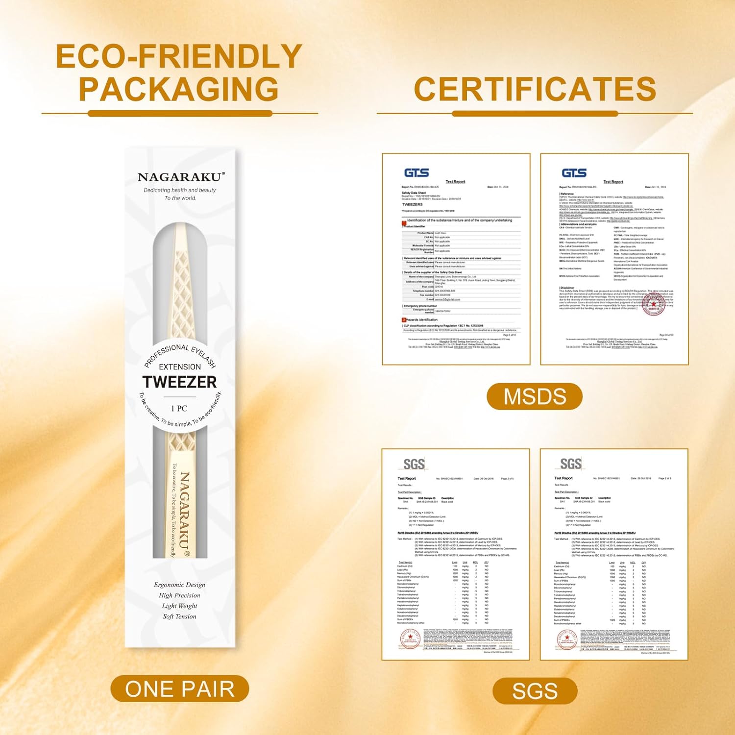 NAGARAKU Precision Fiber Tip Tweezer for Eyelash Extensions Diamond Grip Anti-Static Anti-Slip Premium Stainless Steel Pointed Volume Eyelashes Tweezers Supplies with Box(S Curved Tip Tweezer AG-08)