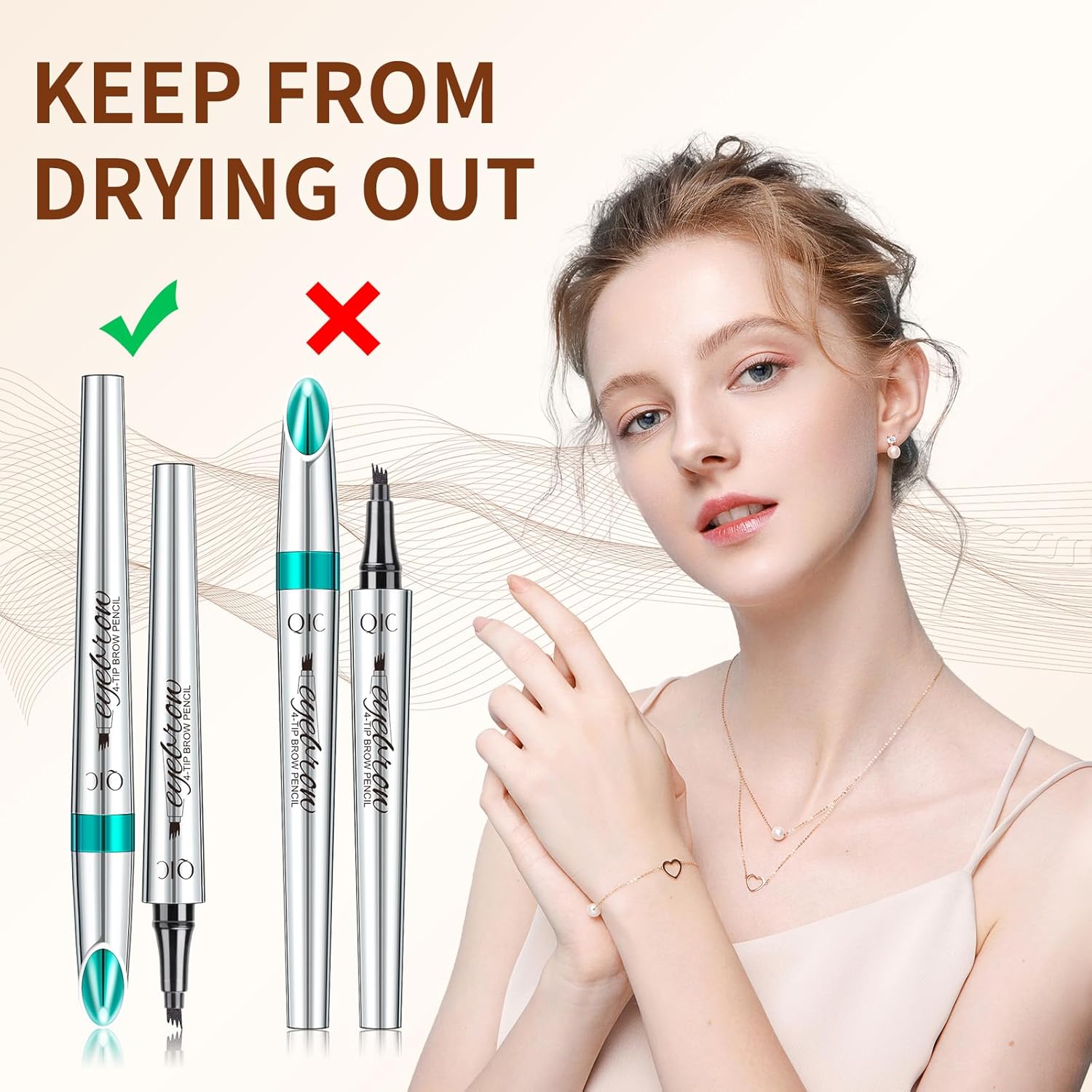 QIC Eyebrow 4 Tip Brow Pencil, Microblading Pen Waterproof Long-Lasting with Upgrade Micro-Fork Tip Applicator for Natural Brows (Black-04)