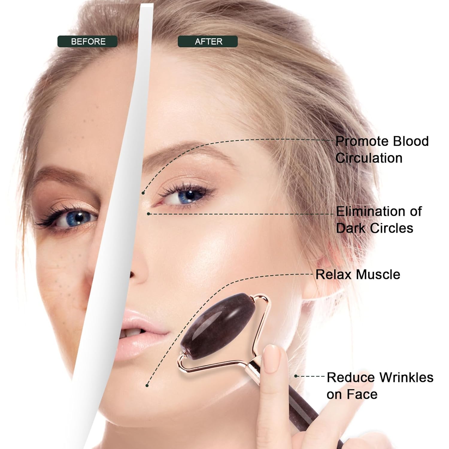 • 【Healthy Facial Tool】Use jade roller for face can decrease puffiness, give you a refreshed, keep you healthy.