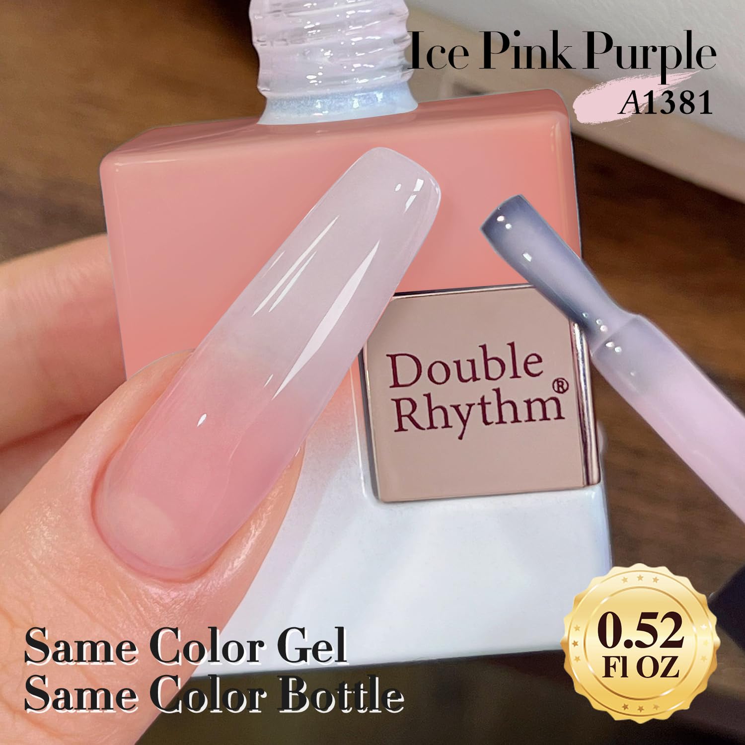 Double Rhythm Gel Polish Translucent Sheer Neutral Natural Light Milky Same Color Same Bottle 15ML Jelly Polish Art DIY at Home (Light Pink-A1381)