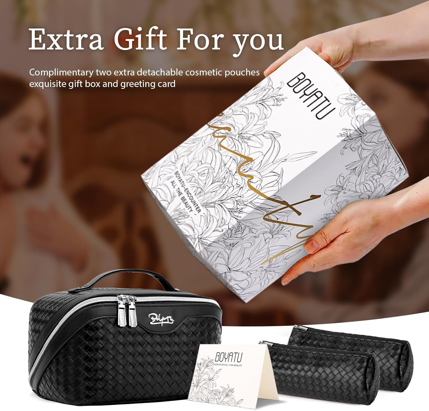 • Exquisite Packaging: This travel make up bags for women comes beautifully packaged in an exquisite gift box, with a thoughtfully designed greeting card. It will be a great gift for ladies on Valentine's Day, Mother's Day, Birthdays, Christmas,Thanksgiving Day, Anniversary Day and more.