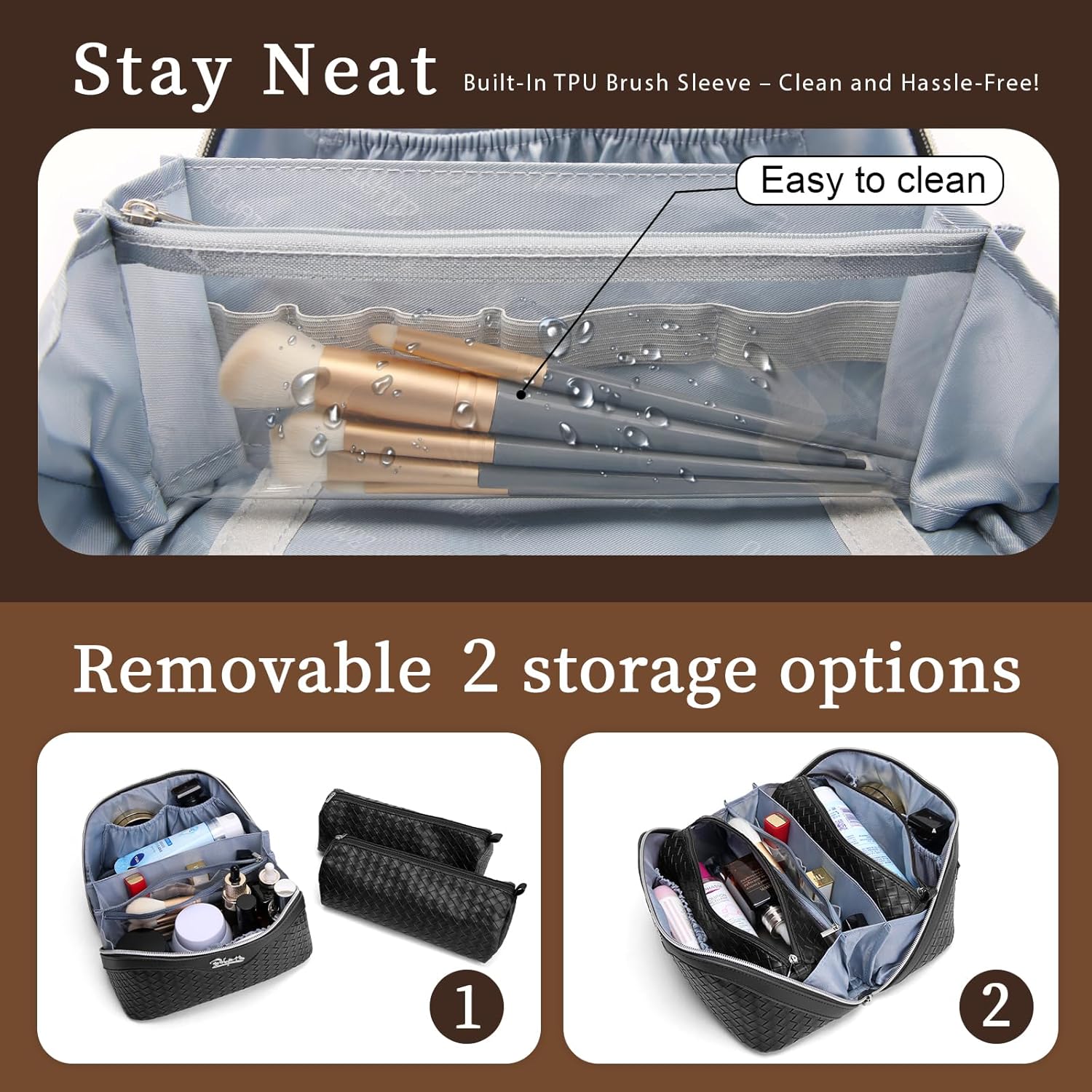 • 3 Piece Makeup Bag Set: This womens makeup bag for vacation comes with two small cosmetic bag,which can organize your brush or other small things More easily.