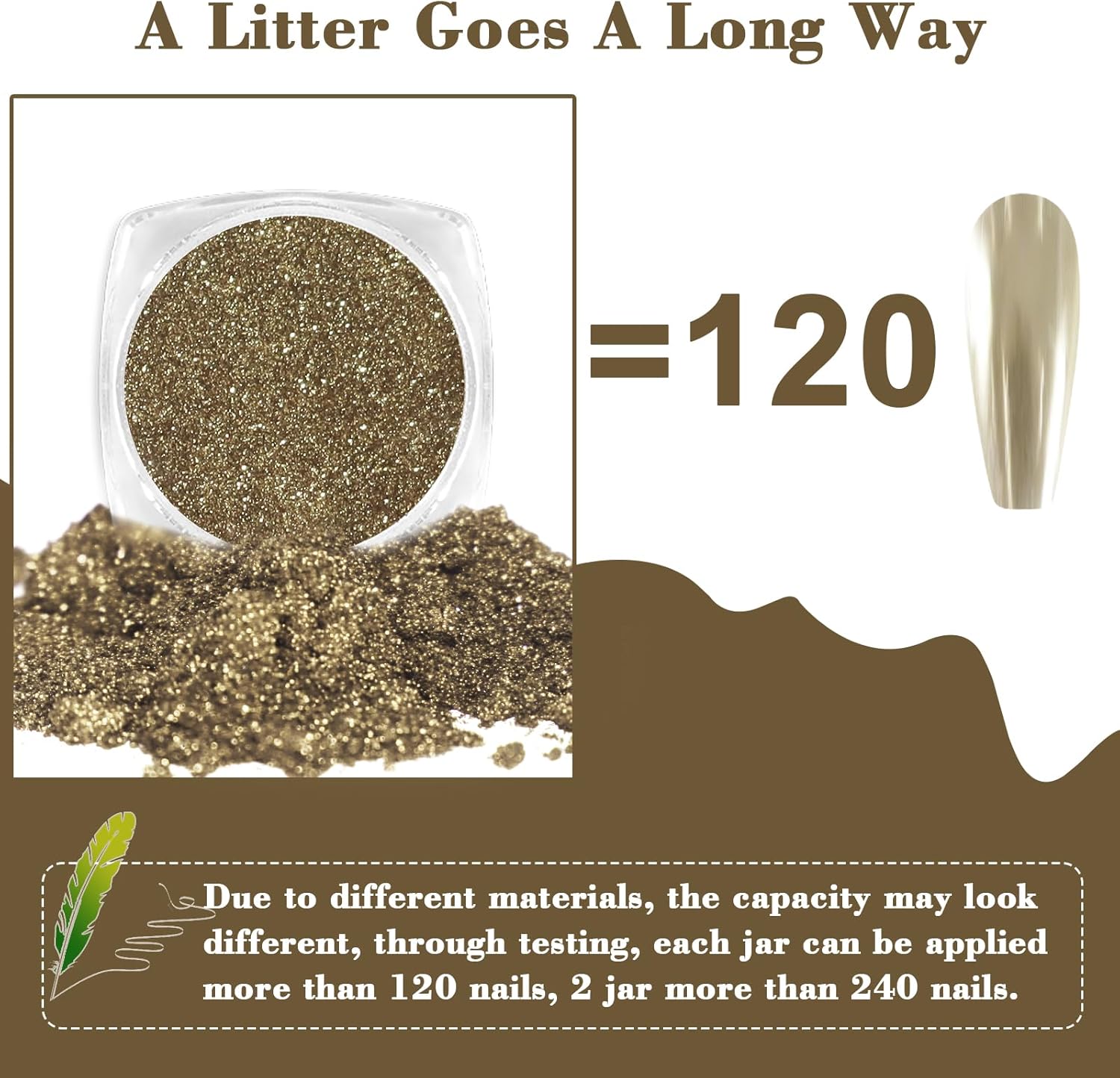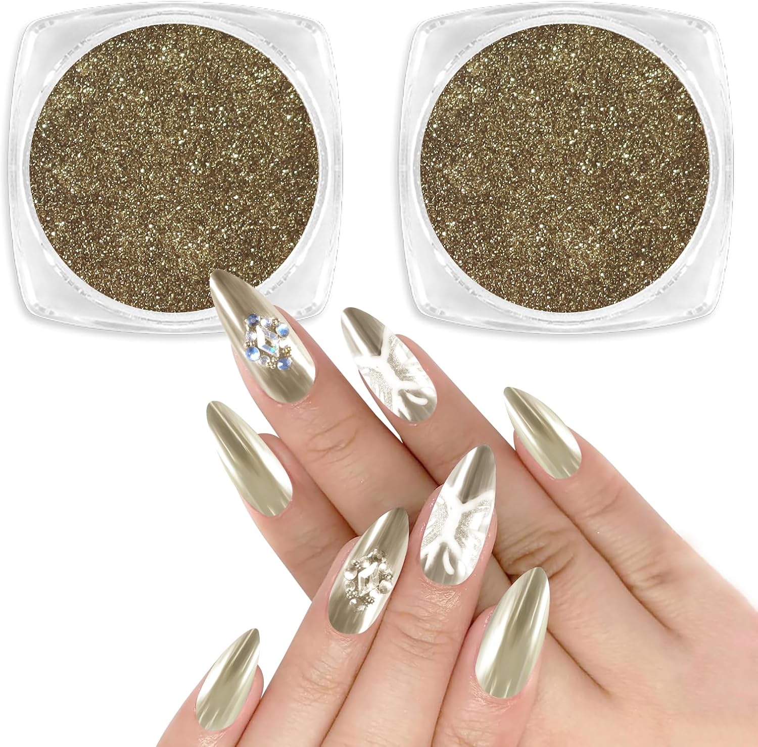 • Package Content: You will receive products including 2 jars of holographic chrome pigment powder in 2 colors and 2 eyeshadow sticks. Net content 1g(0.4oz)/jar, it can be applied for 120 nails and more. Just a little nail pigment powder to get an amazing metallic mirror effect.