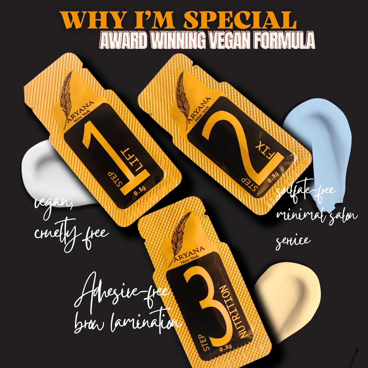 • ARYANA New York Lash Lift and Eyebrow Lamination Kit 2-in-1: One Solution for MEGA Lashes and Feathered Lifted Eyebrow.Transform your lashes and eyebrows into stunning works of art with our all-in-one kit! Achieve professional salon results from the comfort of your home.