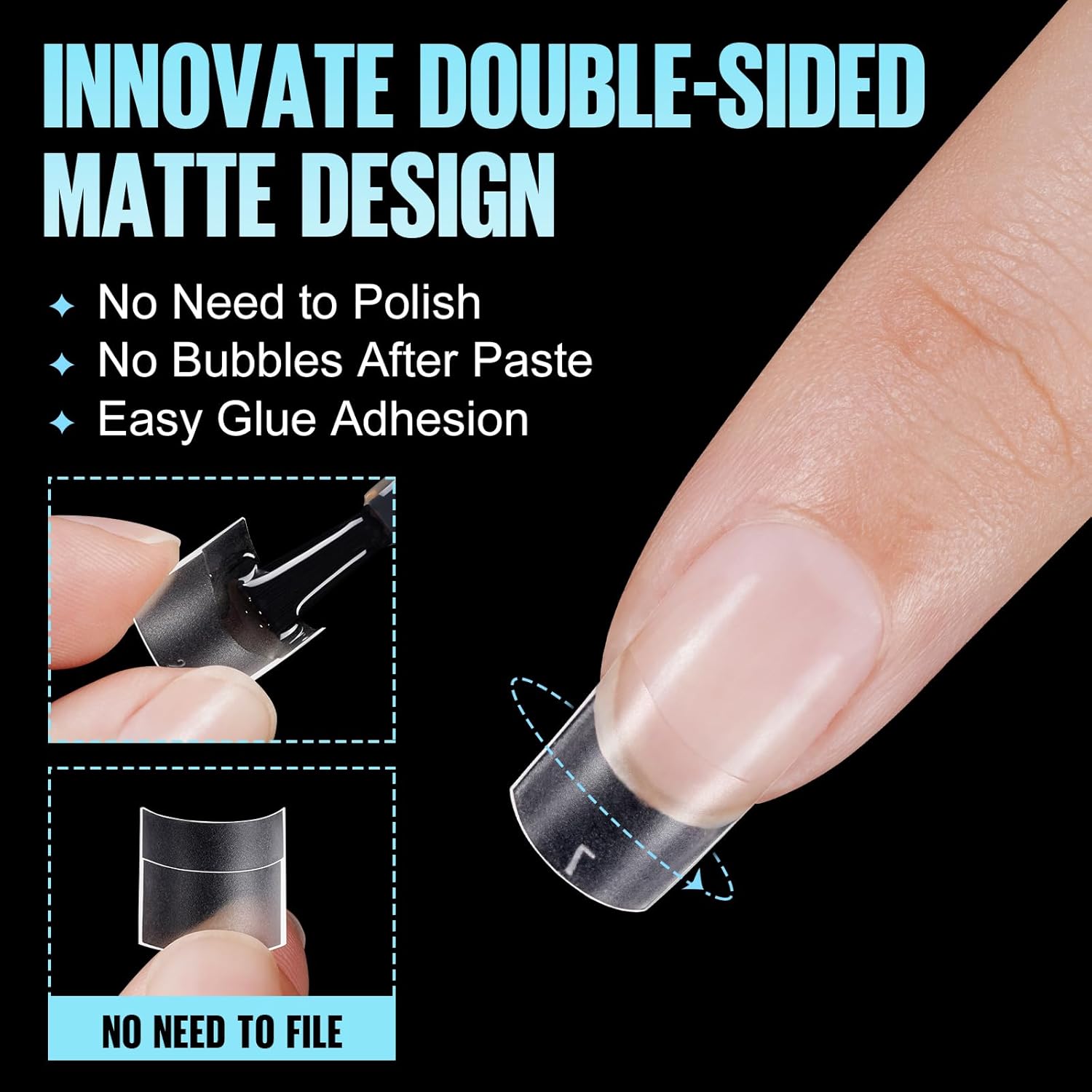 • 【Double Sided Matte Nail Tips】TOMICCA upgraded double-sided matte nail tip comes with regular granular shape. The inner wall adheres strongly to the nail, and the outer wall is easy to apply color glue. Our no c curve nail tips is easier to stick to the nail instantly, provide better care for your nails.