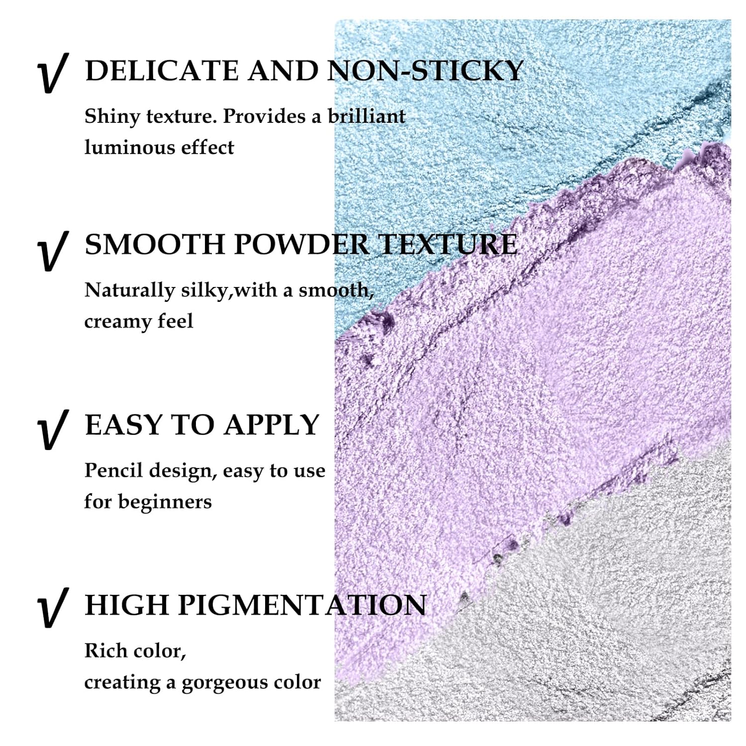 • Eye Highlighter Stick: Glitter Eyeshadow Pen has a shimmer color. You can easily apply a gradient look with it. Multiple colors for you to choose from to create different eye makeup.