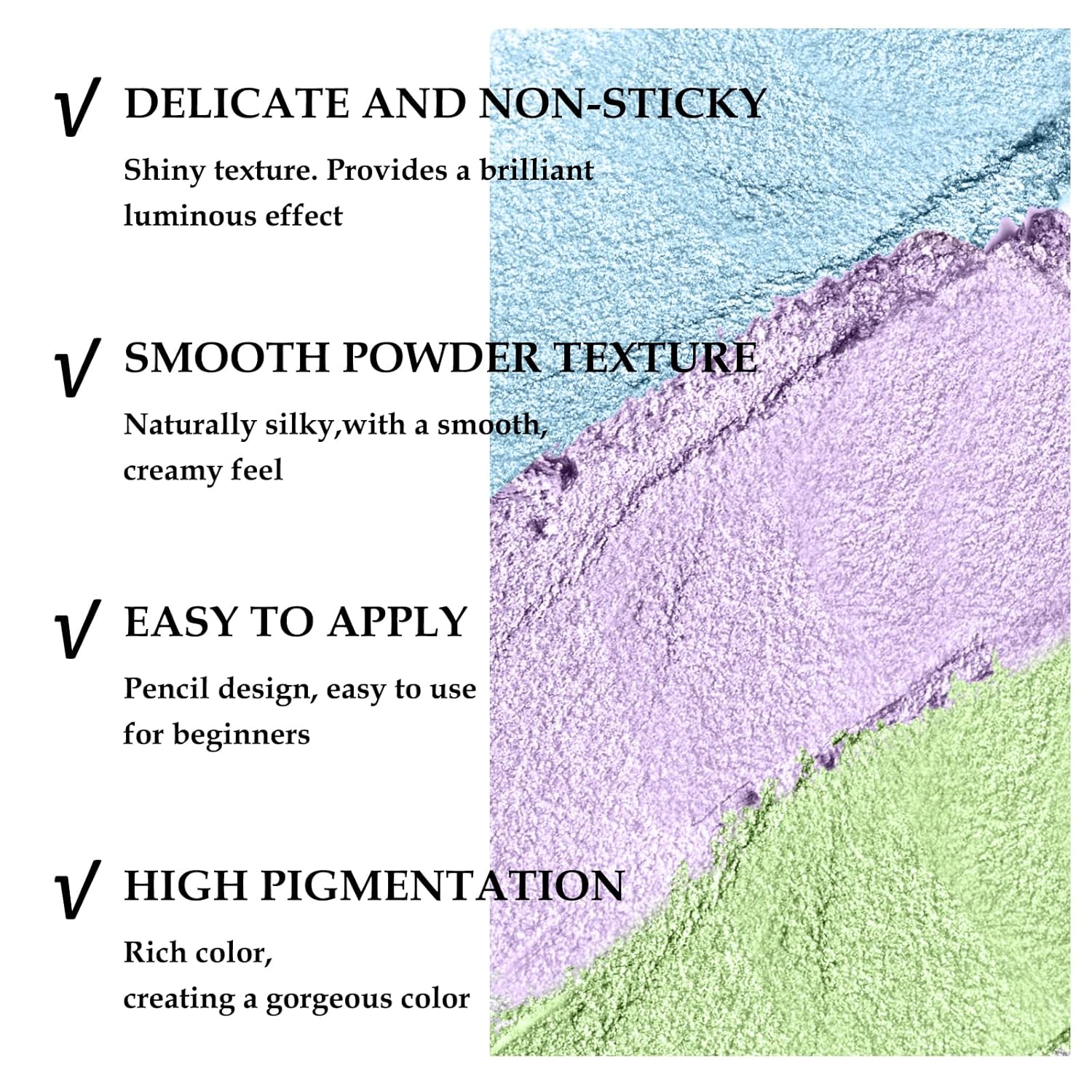• Eye Highlighter Stick: Glitter Eyeshadow Pen has a shimmer color. You can easily apply a gradient look with it. Multiple colors for you to choose from to create different eye makeup.