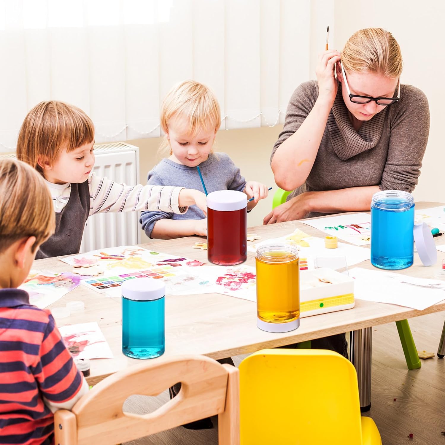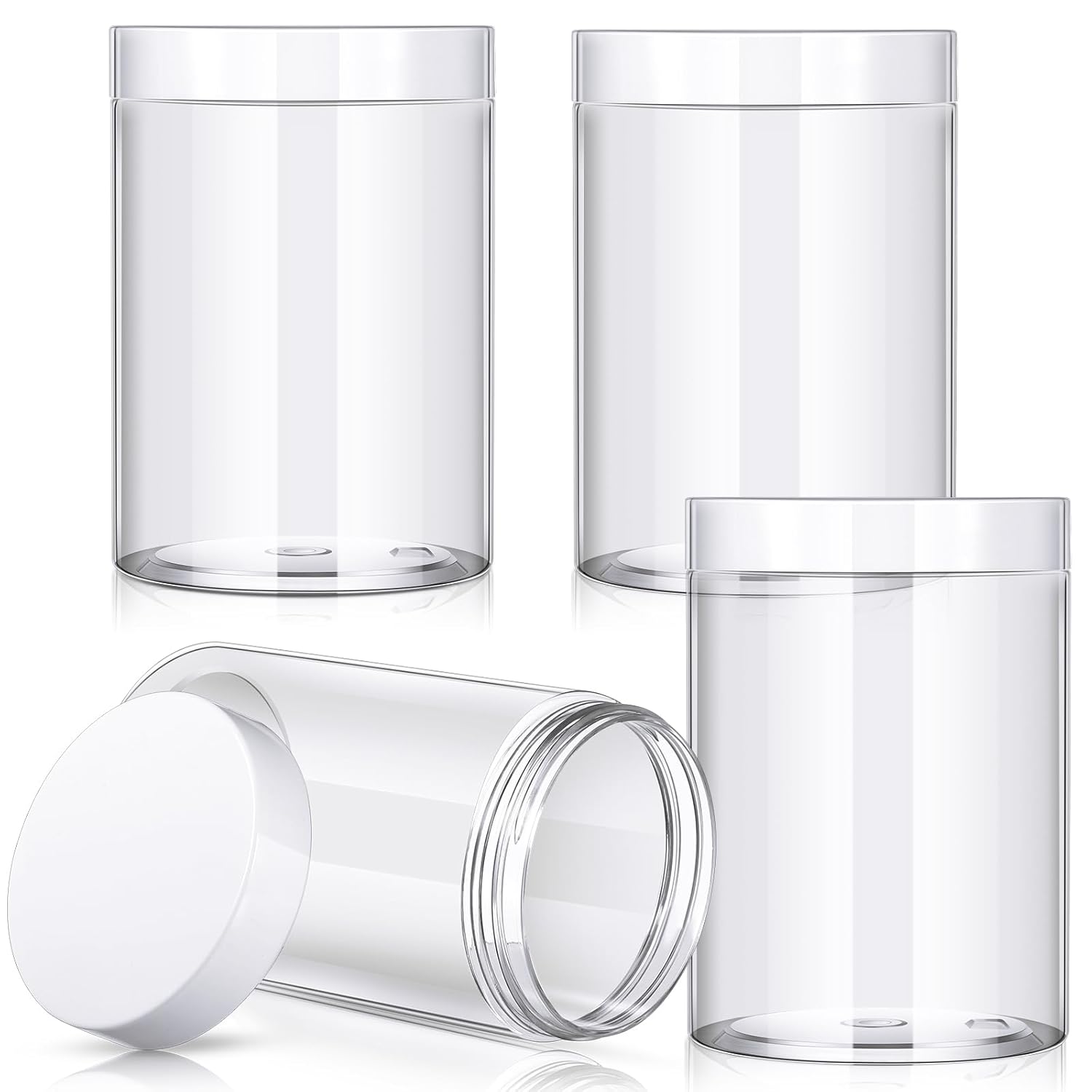 • What you receive: there are 4 pieces plastic jars with white screw-on lids. They are reliable and refillable, measuring about 12 oz in capacity